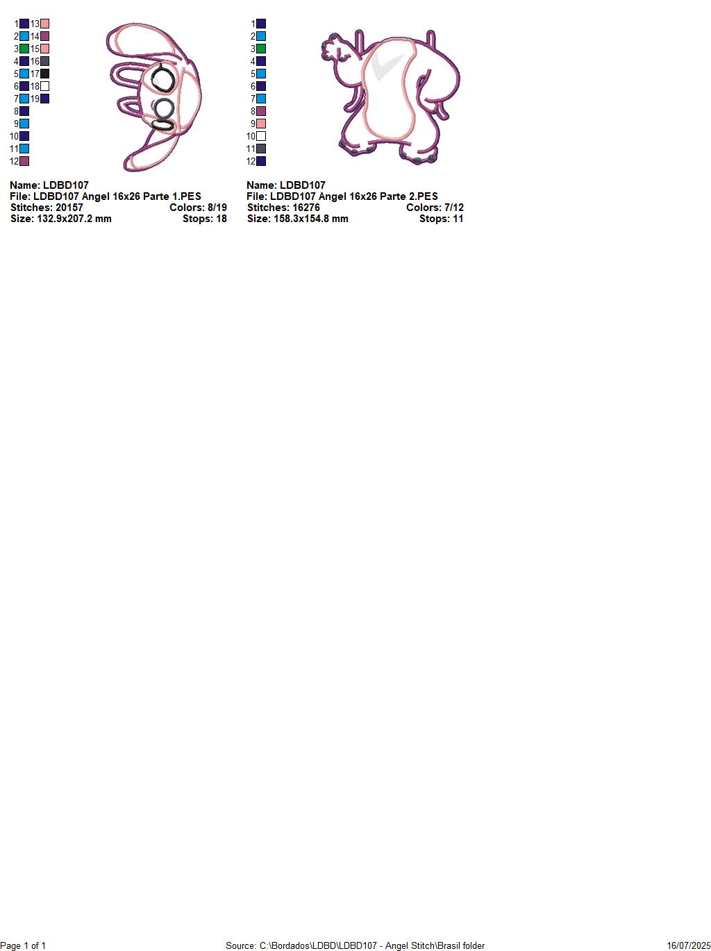 Matriz de Bordado Angel Fofa - Stitch Menina – Projeto ITH