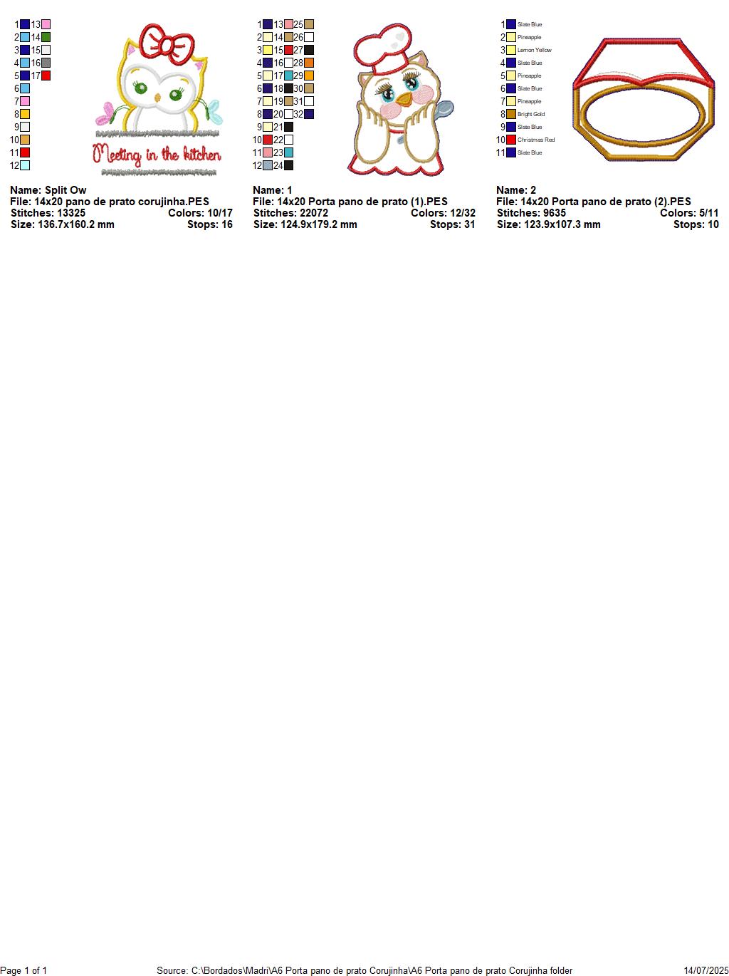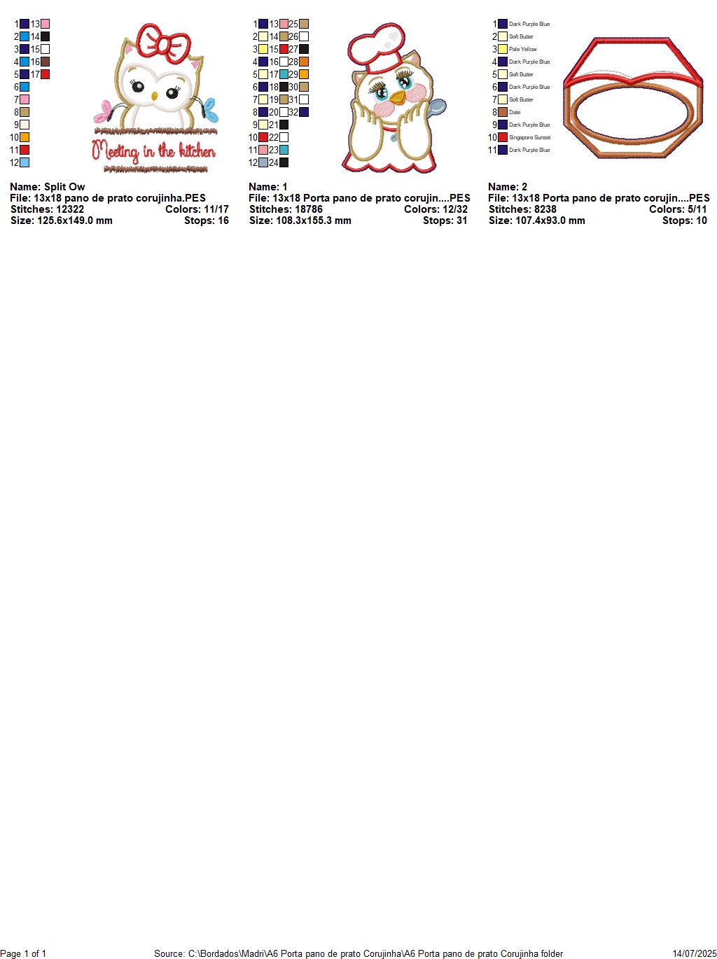 Matriz de Bordado Corujinha Chef - Suporte de Pano de Prato – Projeto ITH