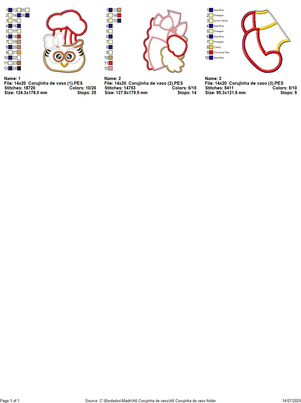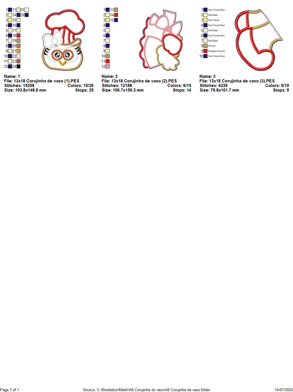 Matriz de Bordado Corujinha Cozinheira – Projeto ITH