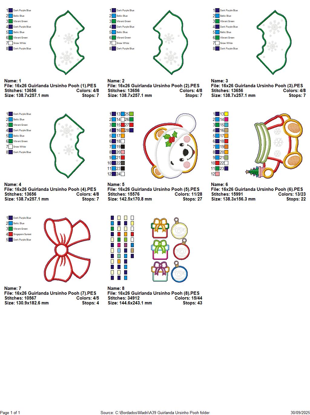 Matriz de Bordado Guirlanda de Ursinho Pooh de Natal – Projeto ITH