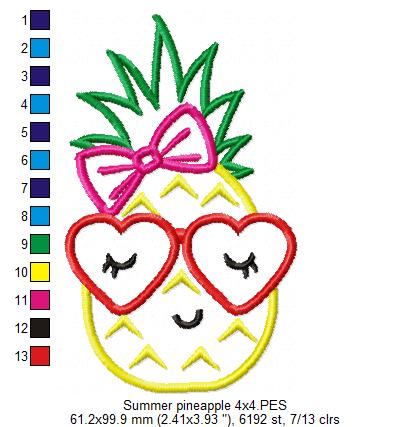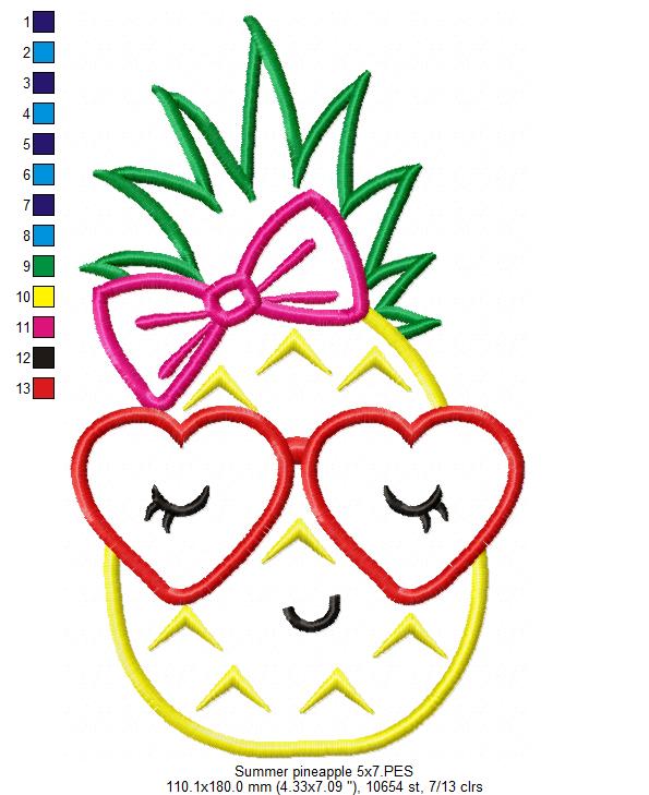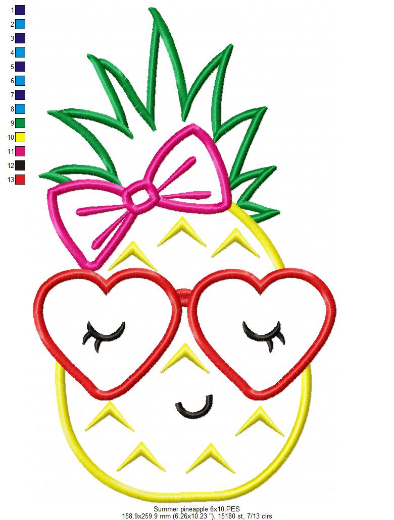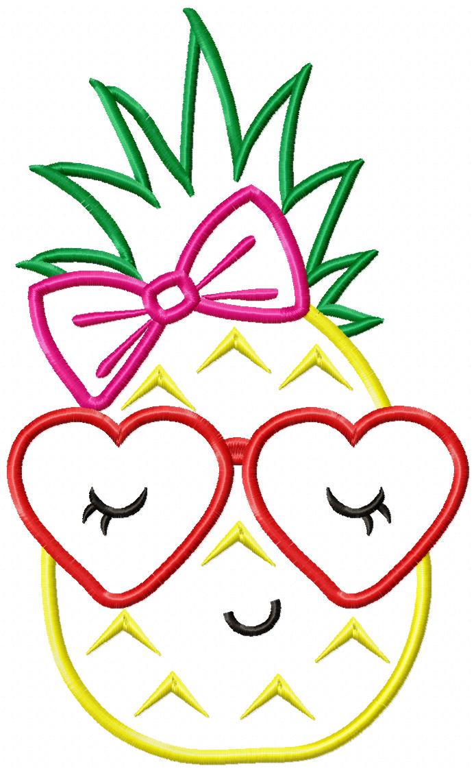 Matriz de Bordado Abacaxi com Laço e Óculos Coração – Aplique