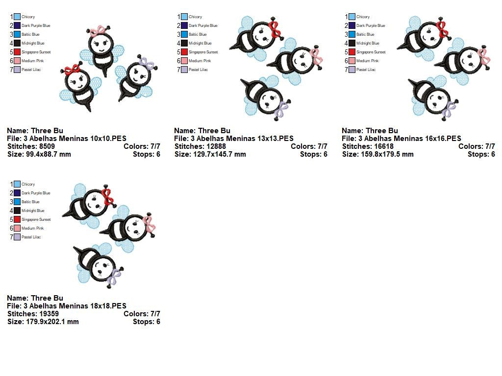 Matriz de Bordado Abelhinhas Delicadas com Lacinho – Aplique