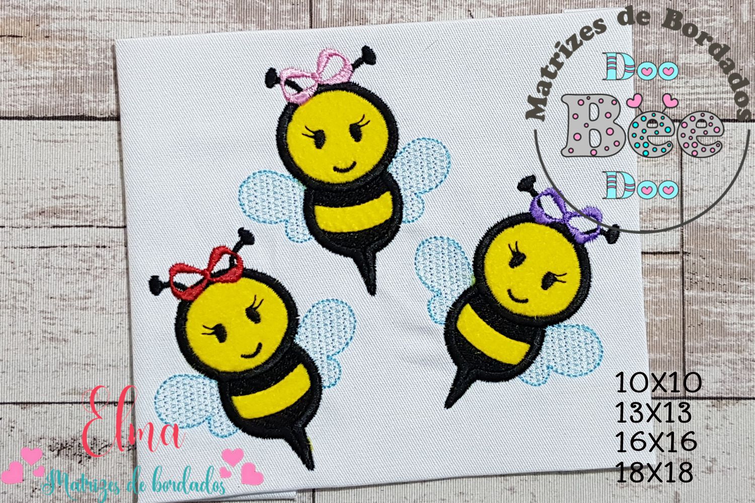 🐝✨ Deixe seus bordados ainda mais fofos com a Matriz de Bordado Abelhinhas Delicadas com Lacinho – Aplique! 💛 Três abelhinhas charmosas, com lacinhos coloridos e carinhas felizes, vão trazer alegria e encanto para seus projetos. 🧵 Ideal para roupas infantis 👕, fraldas 🍼, toalhinhas, bolsas, necessaires e peças de enxoval! 💼