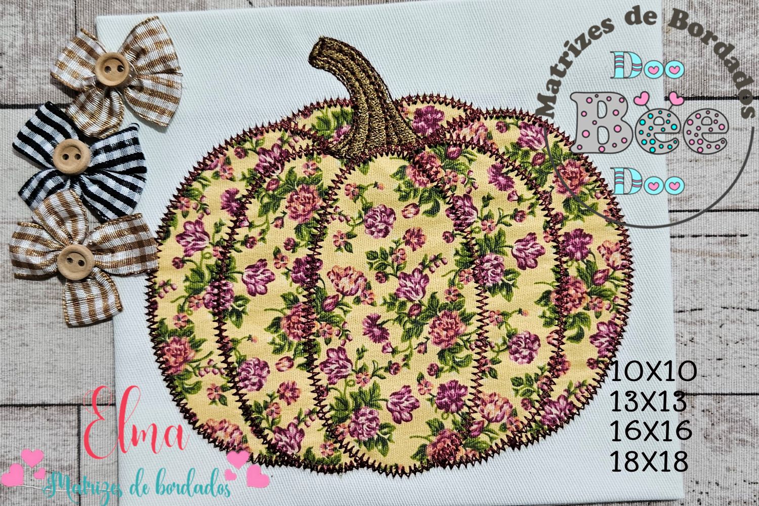 🍂✨ A Matriz de Bordado Abóbora Floral – Aplique Zigzag é perfeita para dar charme e delicadeza às suas criações!