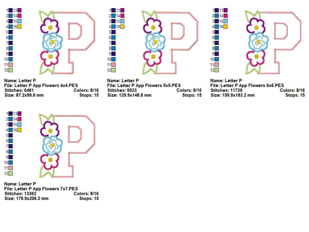 Matriz de Bordado Alfabeto Floral Letra P – Aplique