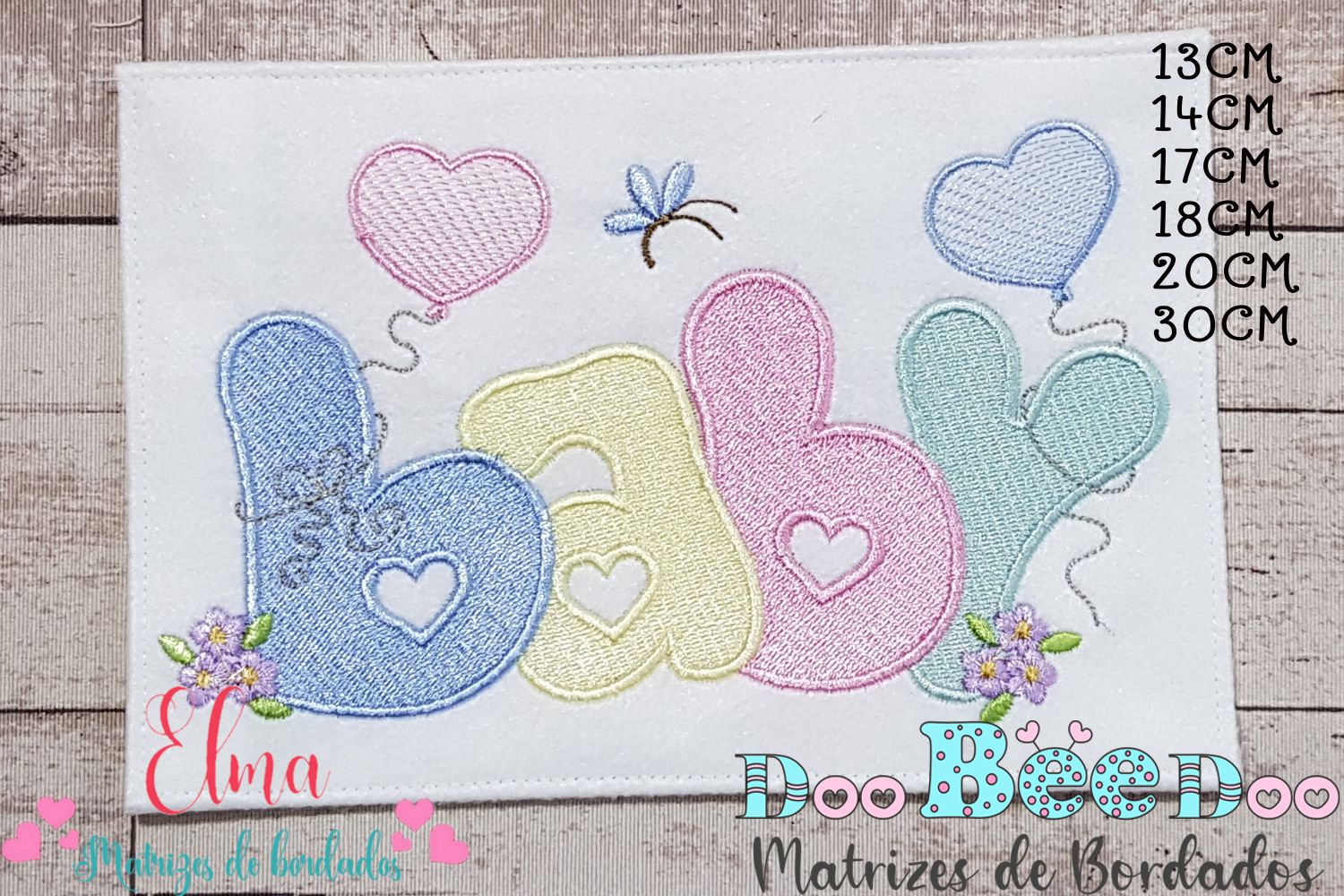 🍼✨ Traga um toque de ternura e magia aos seus bordados com esta linda matriz da palavra "baby", bordada com letras fofas em cores suaves, balões em forma de coração 🎈💙💗, florzinhas delicadas 🌸🌼 e até uma borboleta voando 🦋! É impossível não se apaixonar! 💖