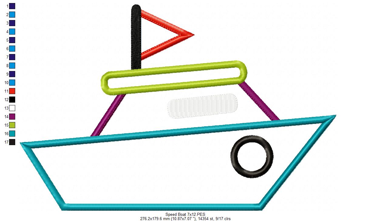 Matriz de Bordado Barquinho Azul com Bandeira – Aplique