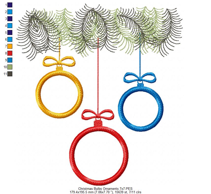 Essa matriz de bordado vai trazer o espírito natalino para seus projetos de forma linda e elegante! 💚❤️ As bolas decoradas com laços e galhos de pinheiro vão deixar suas peças cheias de encanto e o clima perfeito para o Natal! 🌟✨