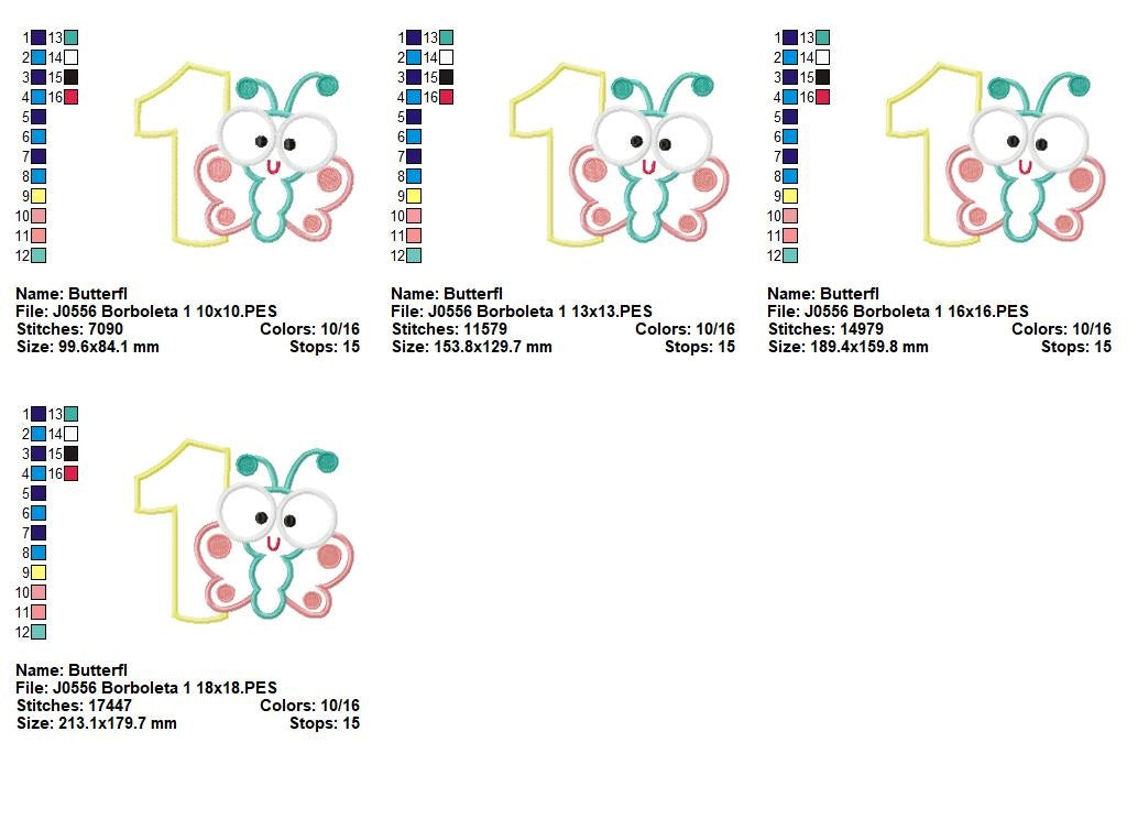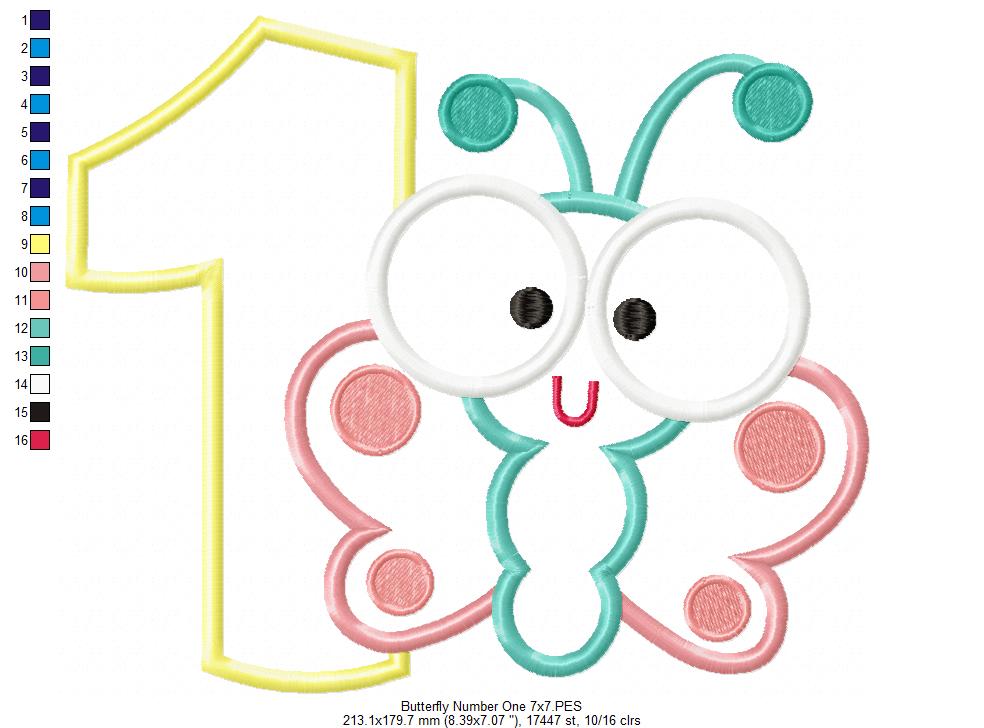 Matriz de Bordado Borboleta Baby com Número 1 – Aplique