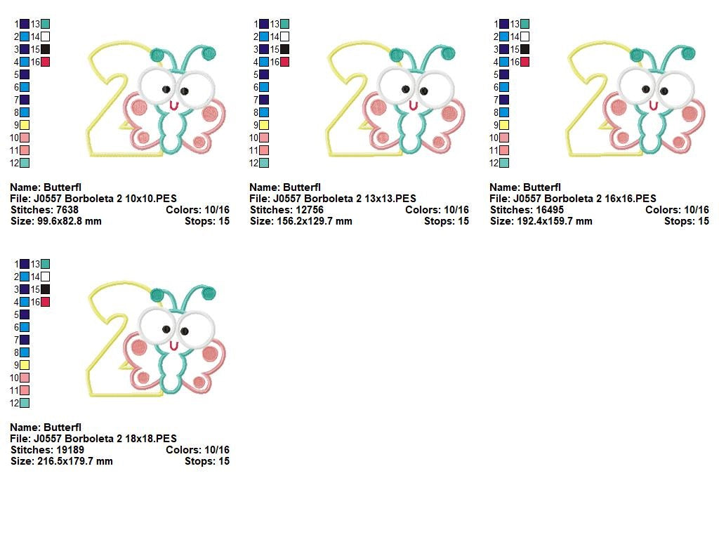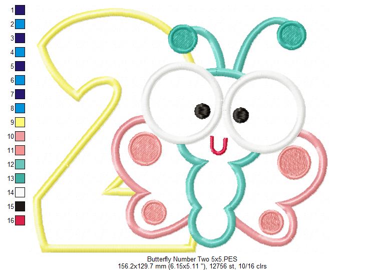 Matriz de Bordado Borboleta Baby com Número 2 – Aplique