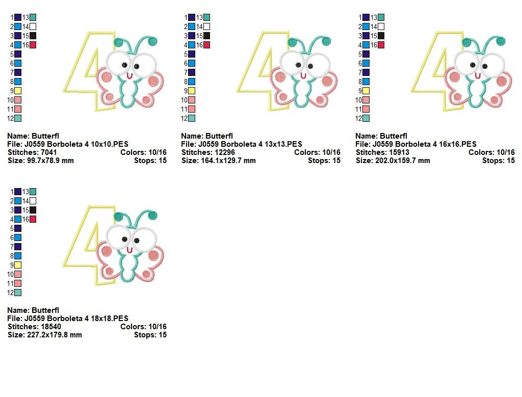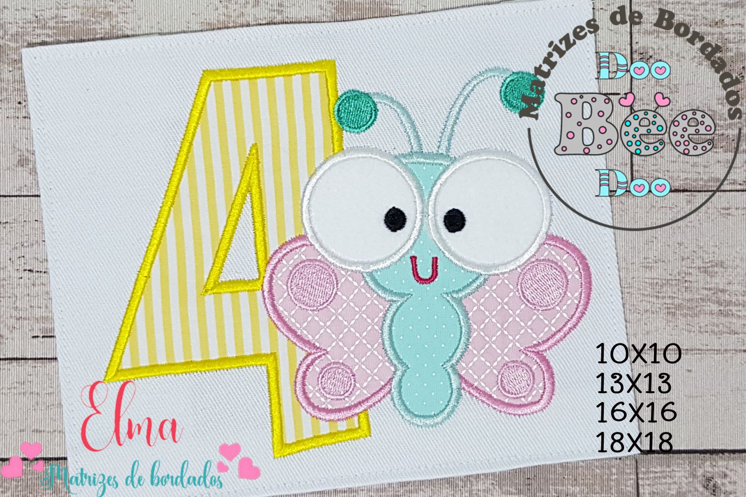 Matriz de Bordado Borboleta Baby com Número 4 – Aplique