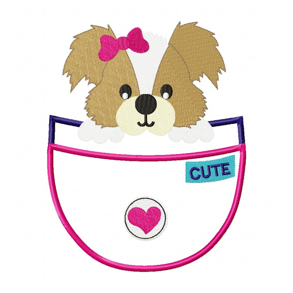 Matriz de Bordado Cachorrinha Fofa no Bolso – Ponto Aplique