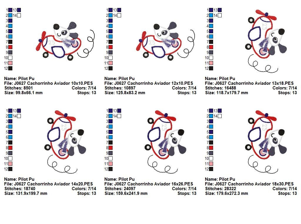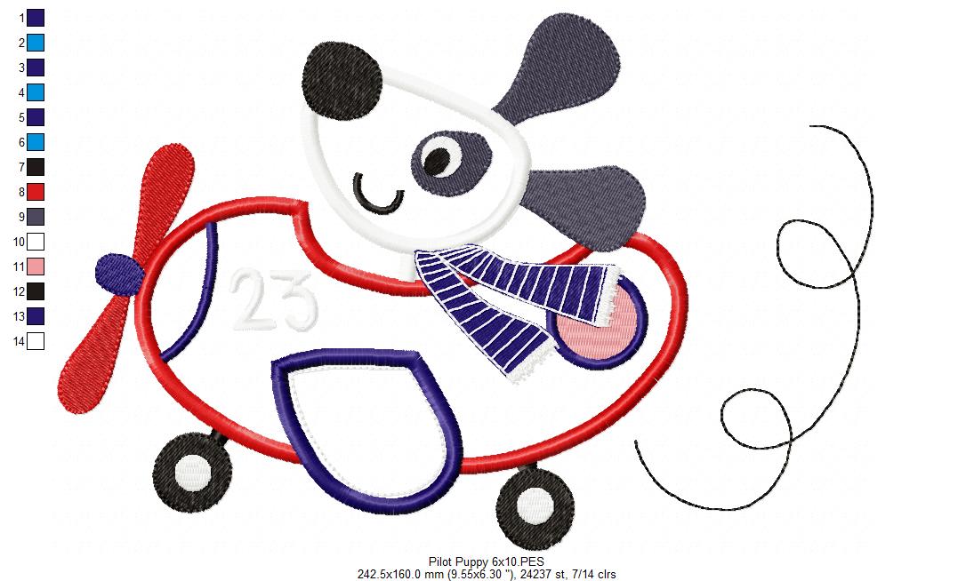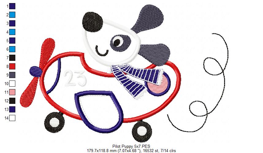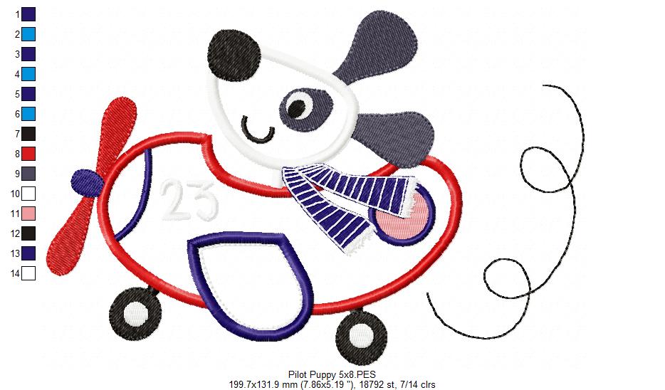 Matriz de Bordado Cachorrinho Aviador no Aviãozinho – Aplique
