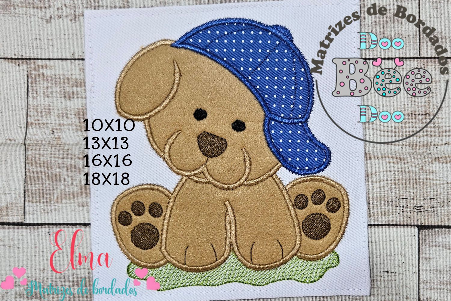 Matriz de Bordado Cachorrinho Sentado com Boné – Aplique