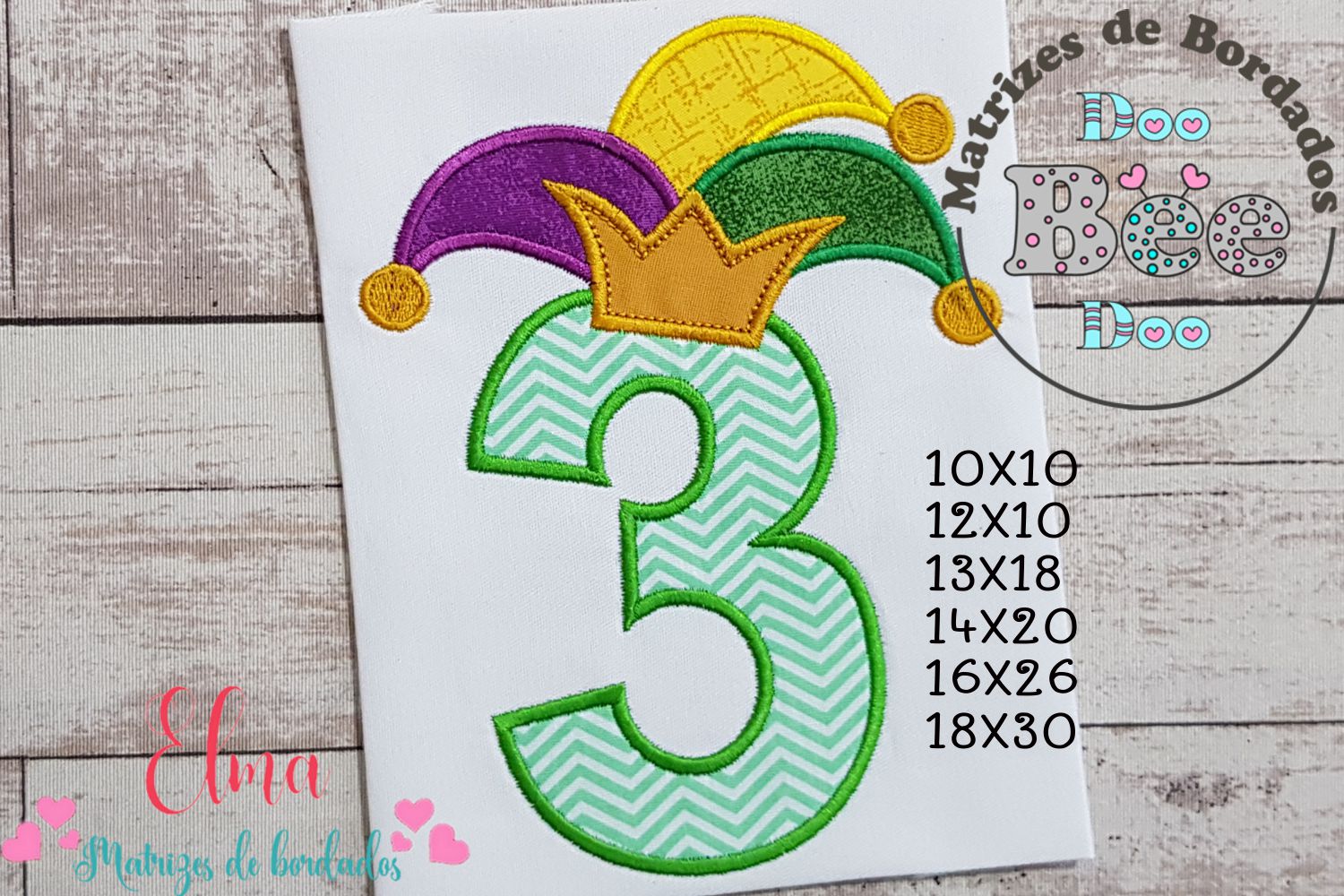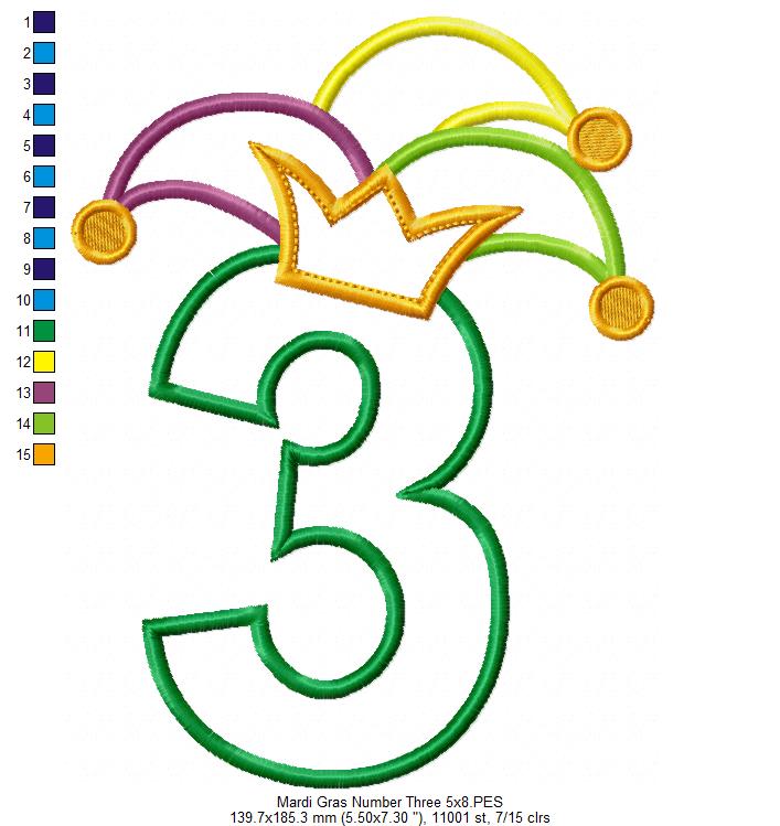 Entre na folia com essa linda Matriz de Bordado do Número 3 com chapéu de carnaval e coroa! 🎭👑 Ideal para peças de mesversário, fantasias infantis, camisetas, toalhas e muito mais. Um design vibrante que traz o clima alegre do carnaval para os seus projetos! 💚💜💛