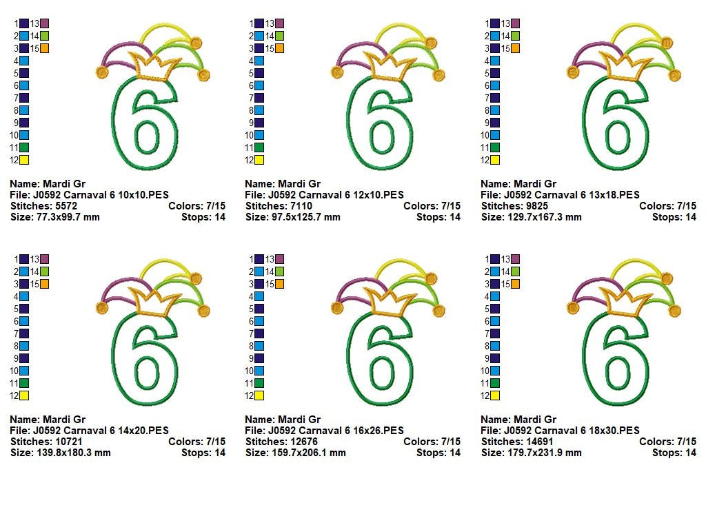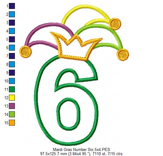 Matriz de Bordado Carnaval Número 6 com Chapéu Divertido – Aplique