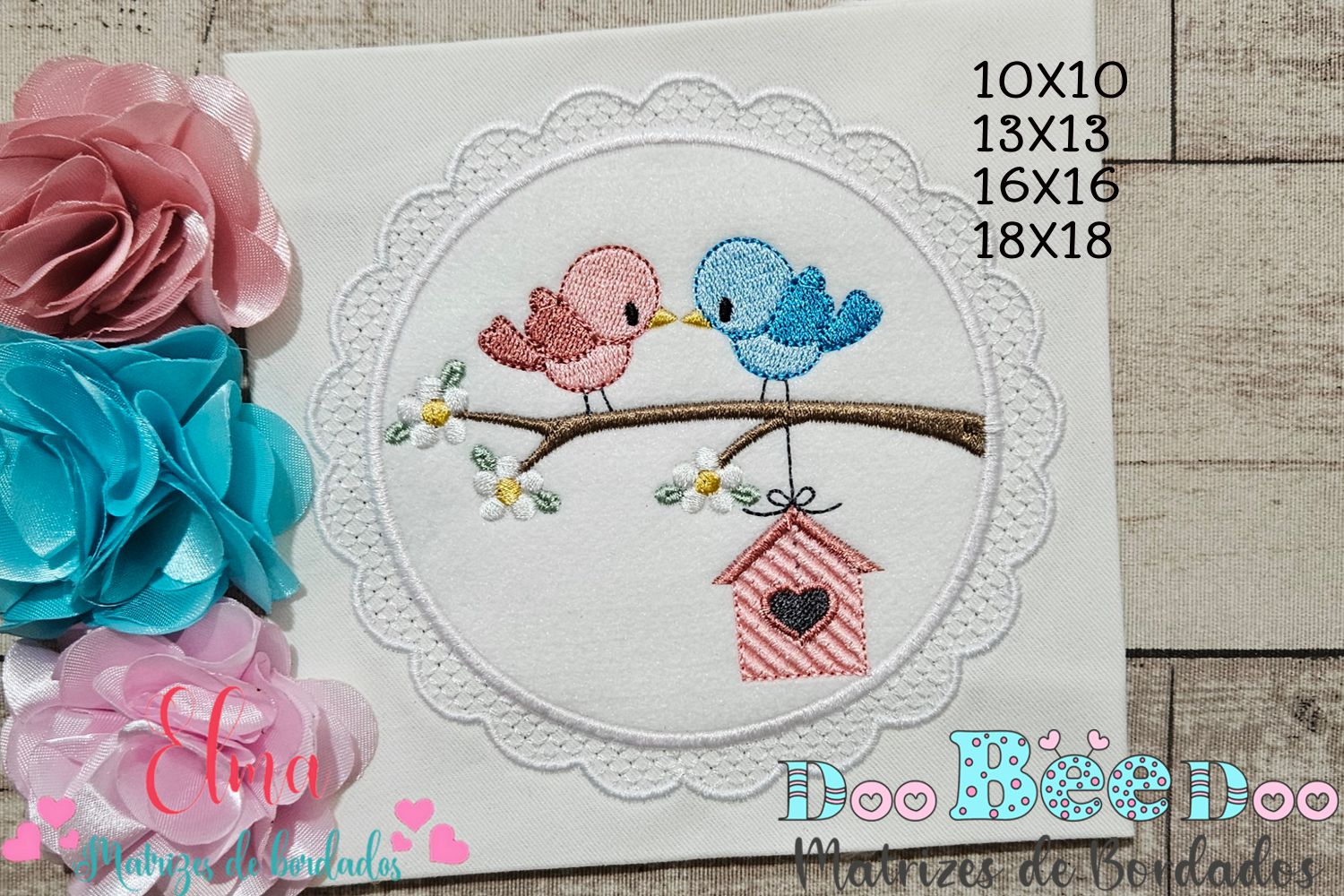 💖 Deixe seu bordado ainda mais delicado com a Matriz de Bordado Casal de Passarinhos Fofos – Aplique! Um casal encantador de passarinhos sobre um galho florido, com uma moldura rendada e uma casinha com coração 🐦💕. Ideal para enxoval de bebê, fraldas, toalhinhas, quadros decorativos, roupas infantis e muito mais!