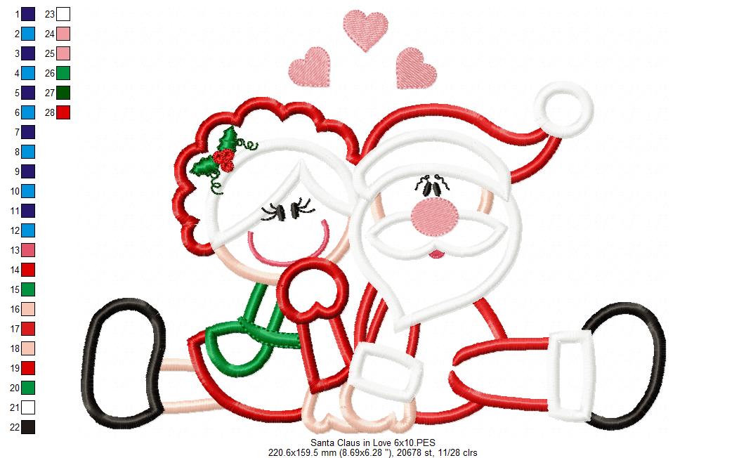 🎄💞 A Matriz de Bordado Casal Noel Fofurinha – Aplique é puro amor e encanto para os seus bordados natalinos! O Papai Noel e a Mamãe Noel cheios de fofura abraçados transmitindo todo o espírito natalino — um carinho bordado que aquece qualquer coração! 🤗✨