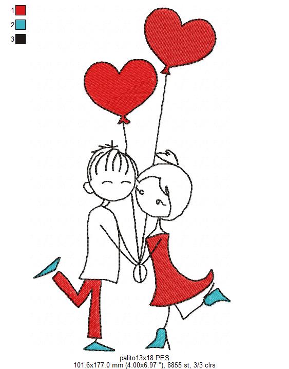 Deixe seus projetos ainda mais românticos com essa linda matriz de um casal apaixonado segurando balões em forma de coração! ❤️🎈 Uma cena delicada e encantadora para celebrar o amor em panos de prato, toalhas, almofadas, quadros decorativos e muito mais! 🥰✨