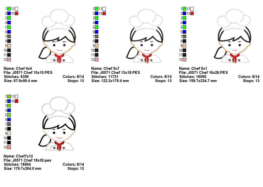 Matriz de Bordado Chef de Cozinha Menina Fofa – Aplique