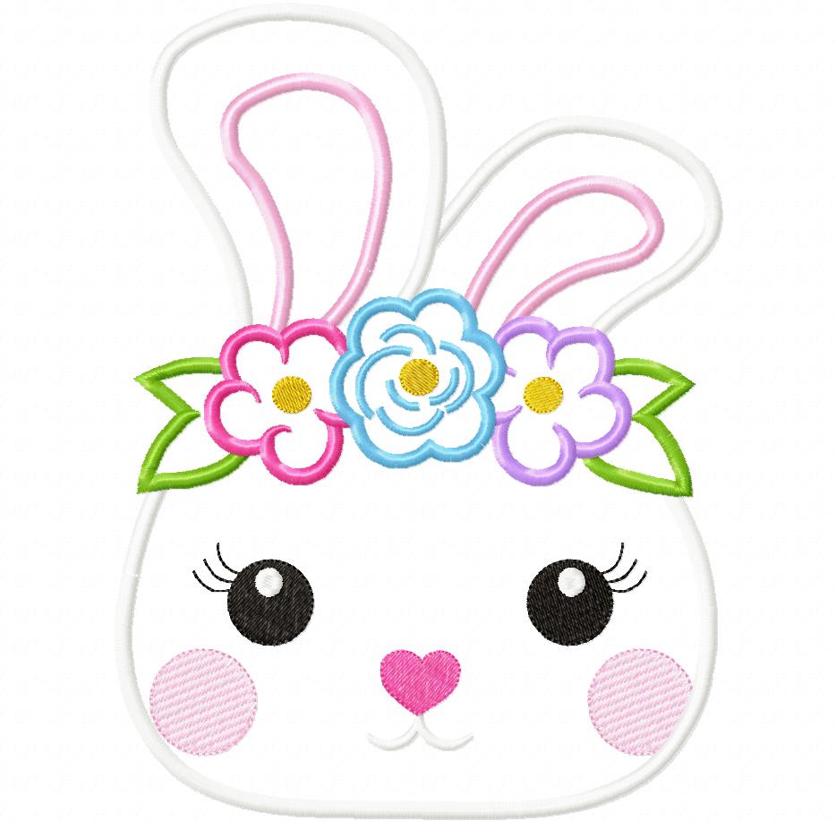 Matriz de Bordado Coelhinha com Flores – Aplique