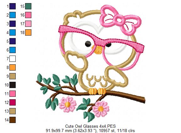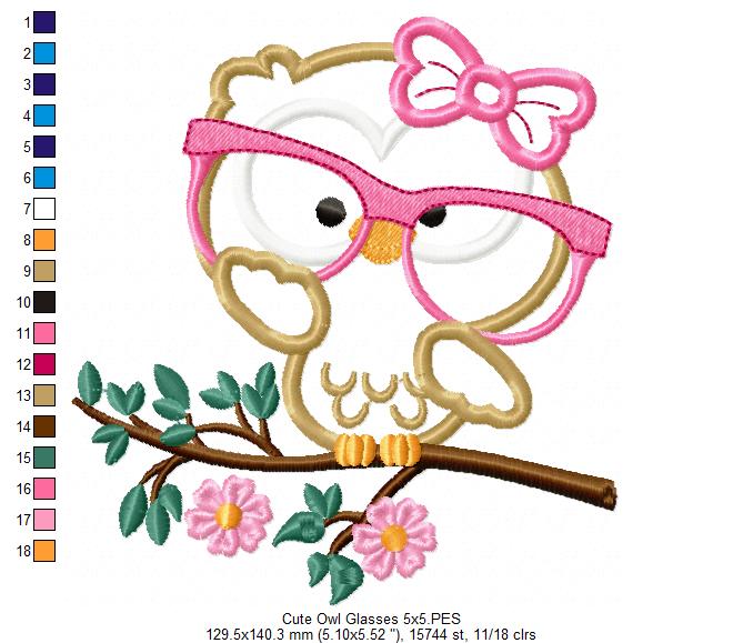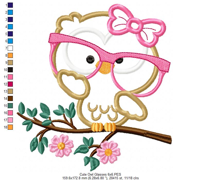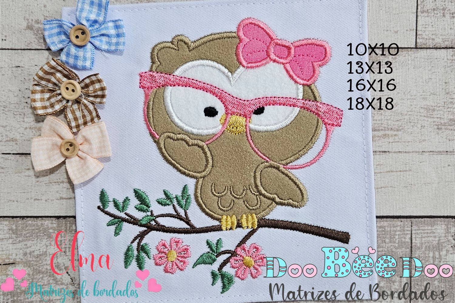 Matriz de Bordado Corujinha com Óculos – Aplique