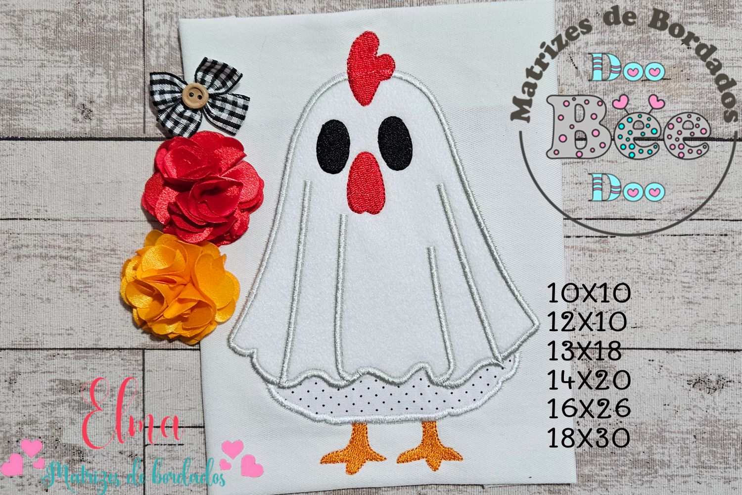 Matriz de Bordado Galinha Fantasminha Fofa – Aplique