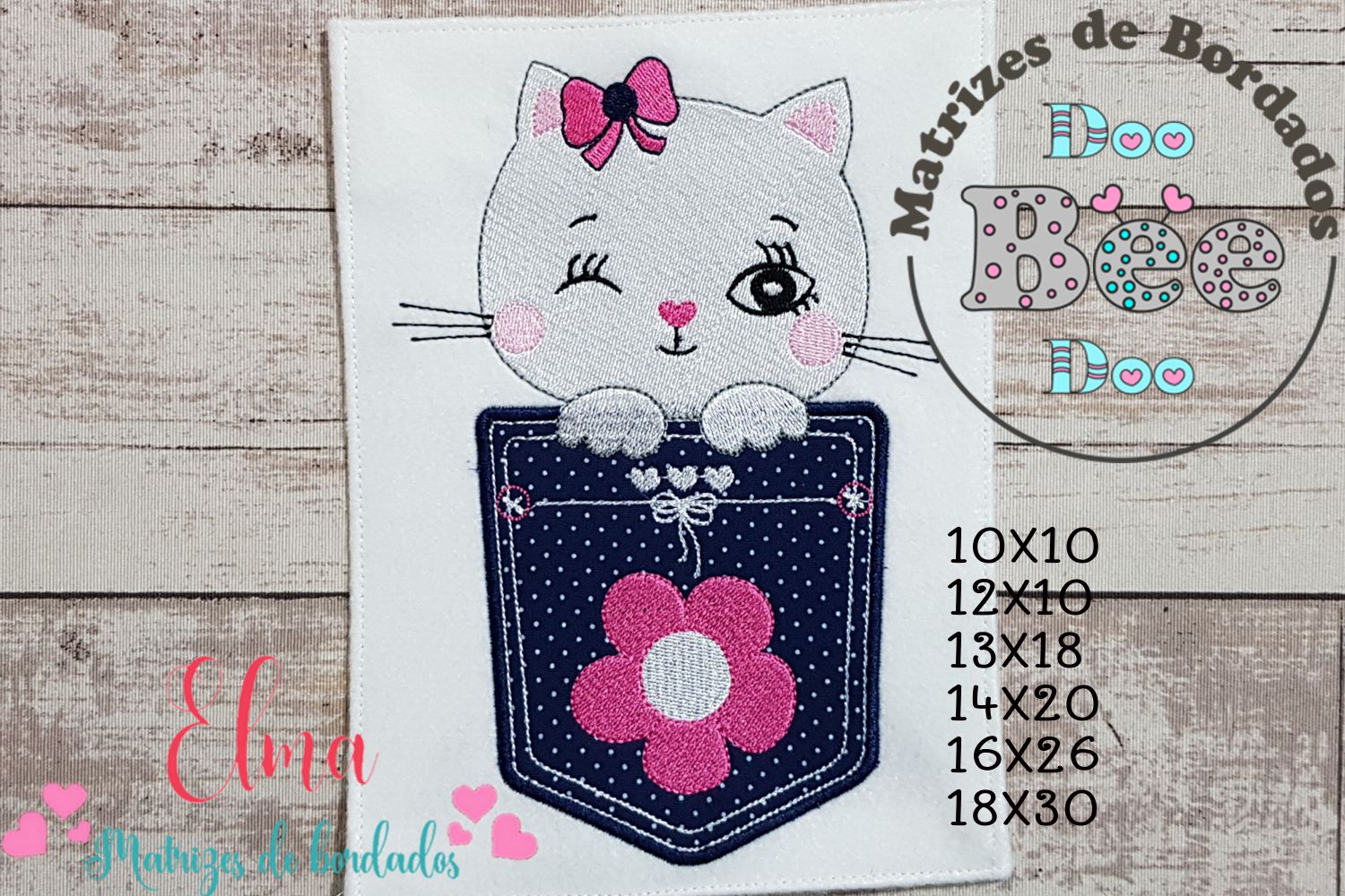 repare-se para se apaixonar por essa gatinha encantadora! 😻 Com um olhinho piscando, bochechas coradas e um laço delicado, ela esbanja charme ao espiar de um bolsinho azul decorado com uma flor pink. Ideal para dar um toque doce e divertido em roupas infantis, toalhinhas, mochilas, aventais, necessaires, mantinhas e muito mais! 💖✨