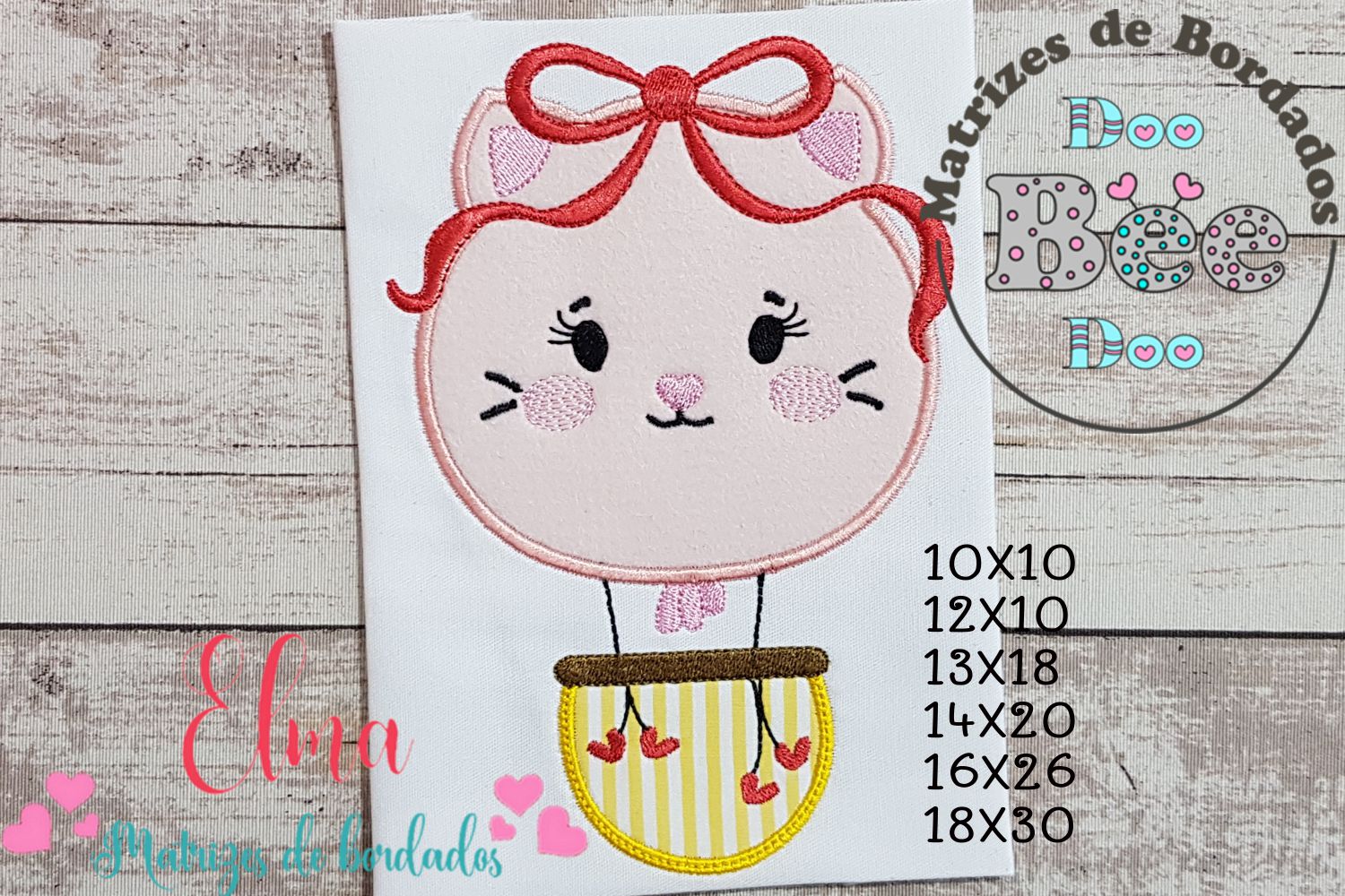 Matriz de Bordado Gatinha Delicada Voando no Balão – Aplique