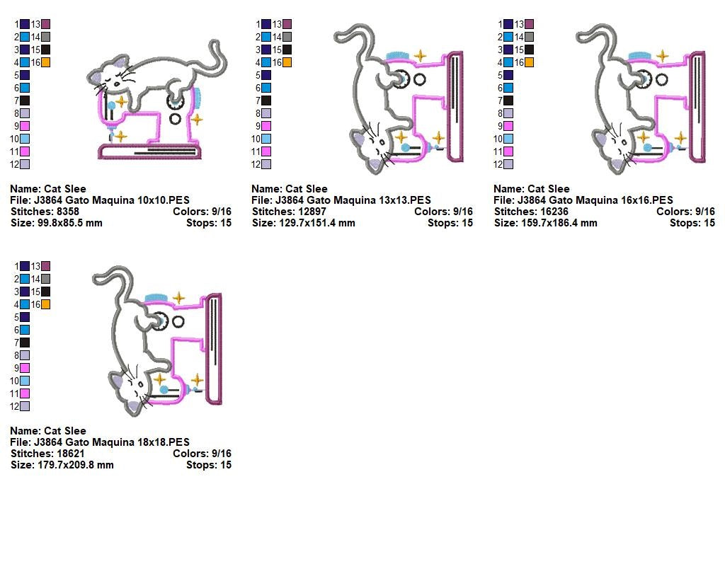 Matriz de Bordado Gatinho Dorminhoco na Máquina de Costura – Aplique