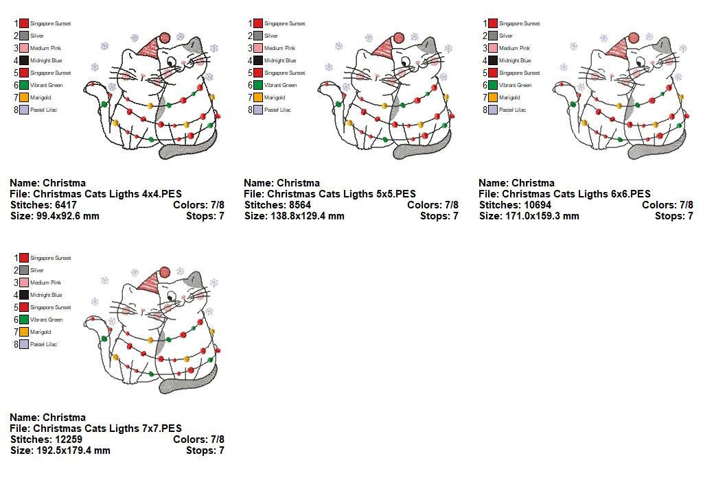 Matriz de Bordado Gatinhos Natalinos Enrolados nas Luzes - Redwork