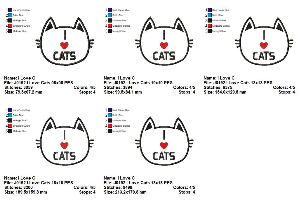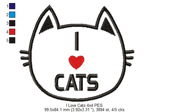 Matriz de Bordado Gato I Love Cats – Aplique