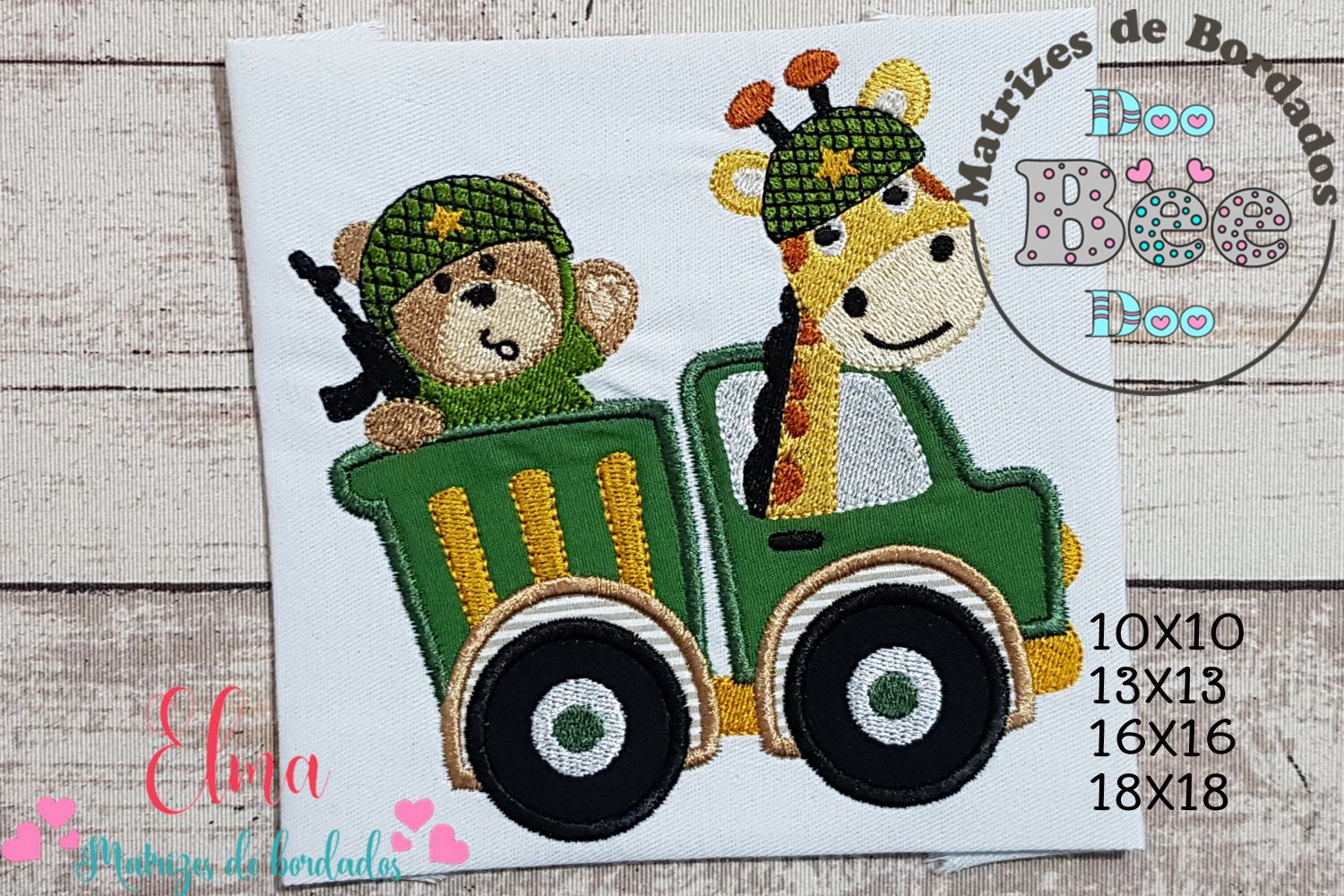 Matriz de Bordado Girafa e Ursinho no Caminhão Militar – Ponto Aplique