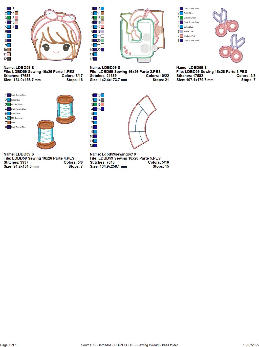 Matriz de Bordado Guirlanda Menina Costureira – Projeto ITH