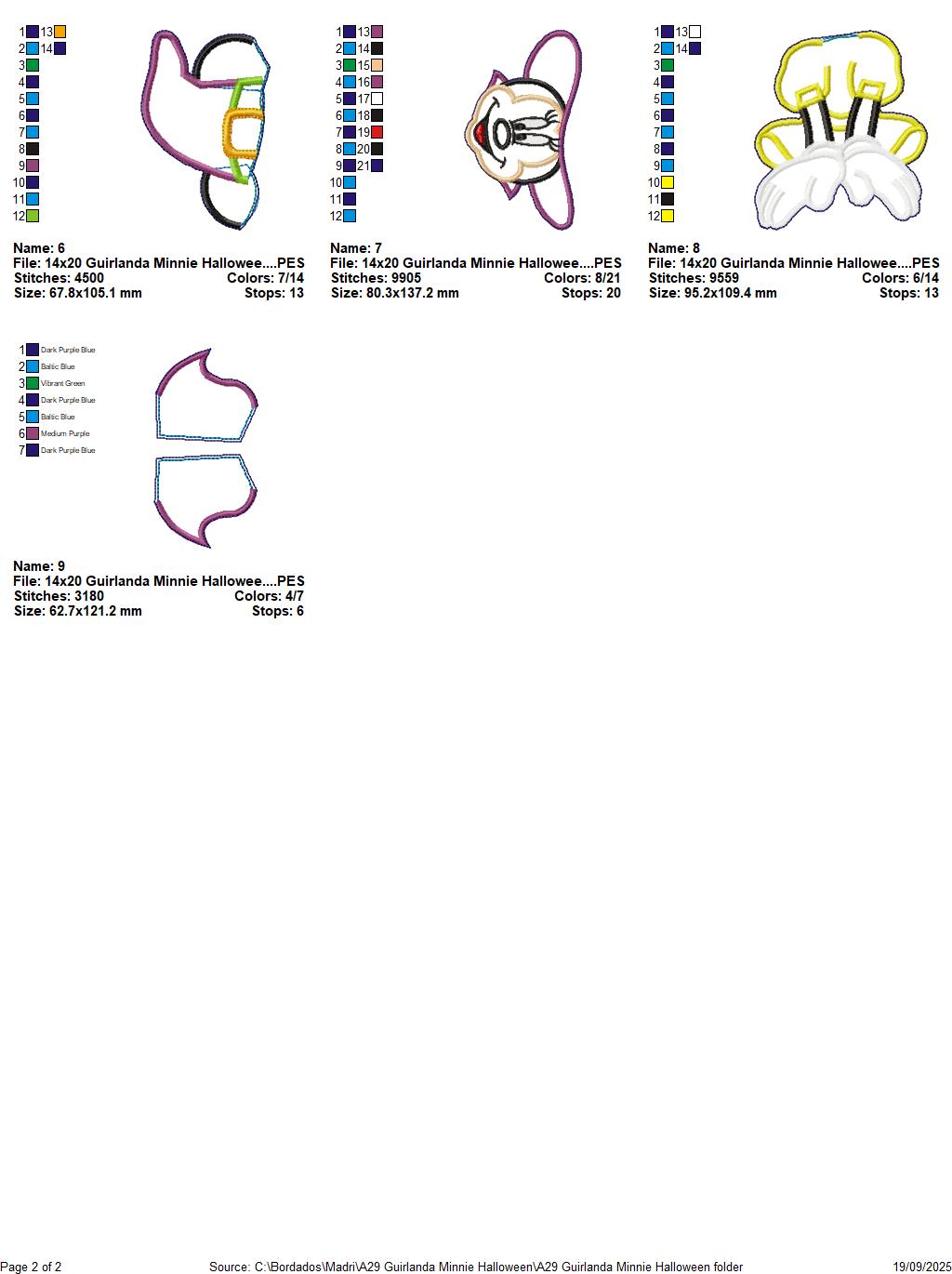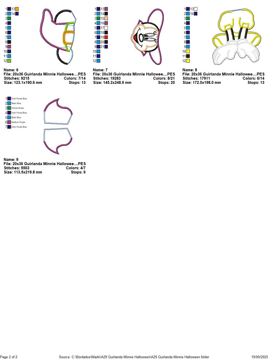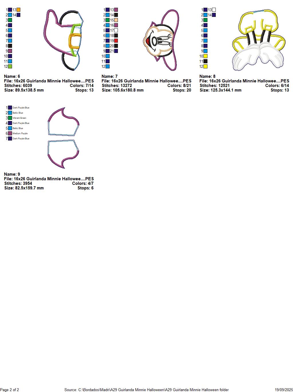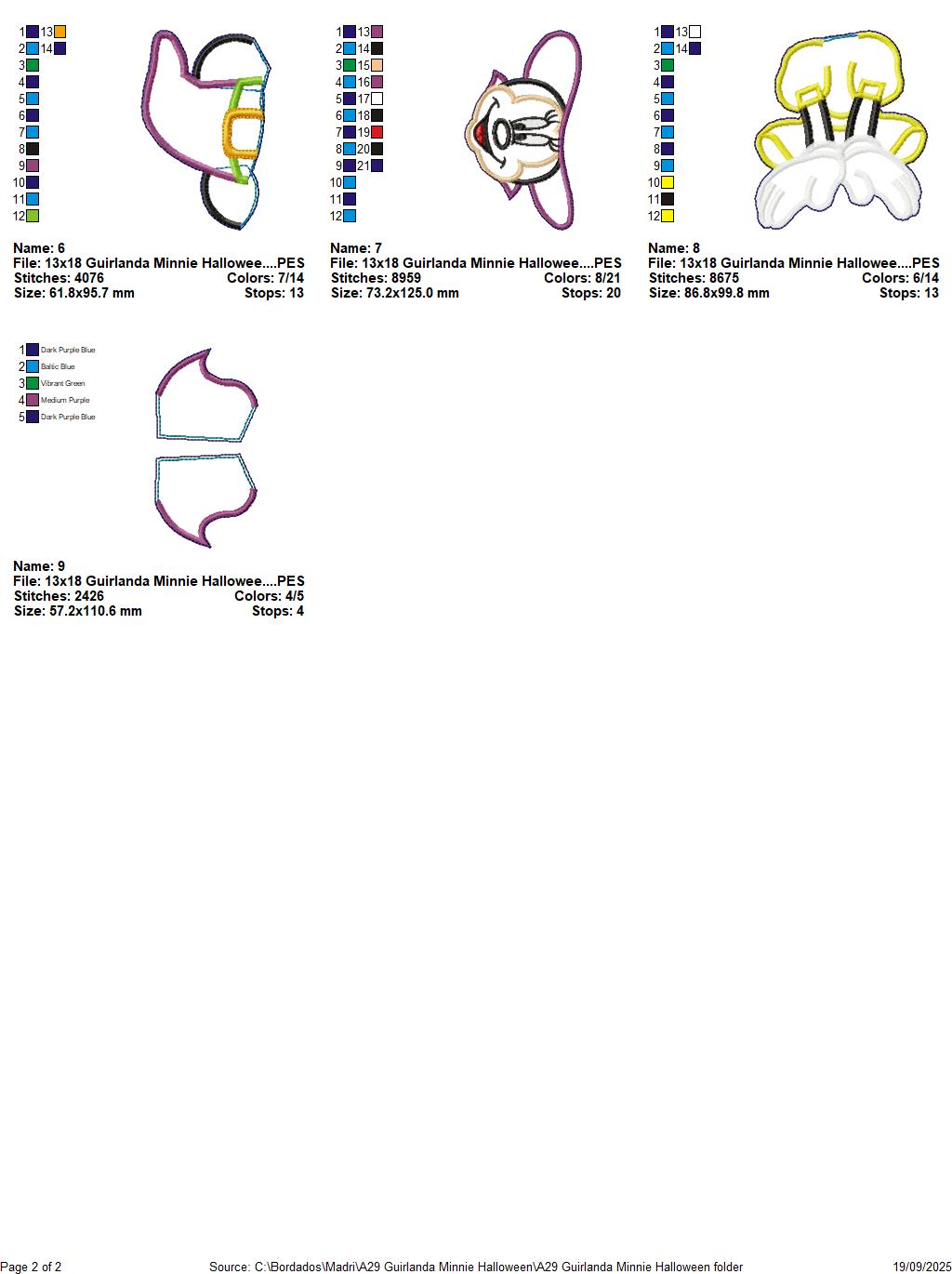 Matriz de Bordado Guirlanda Minnie Halloween - Projeto ITH