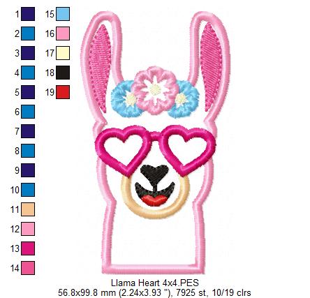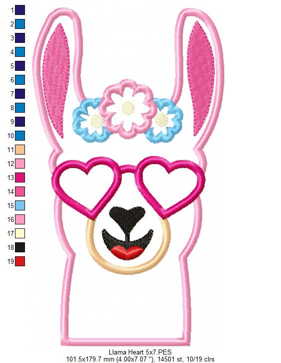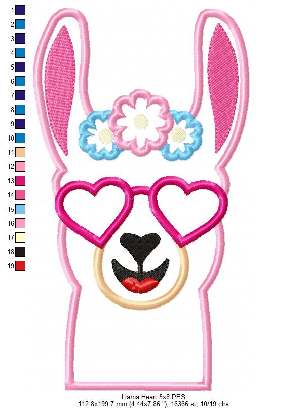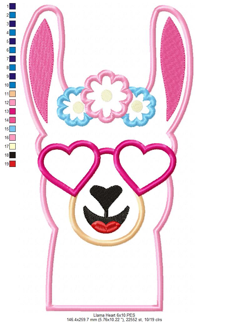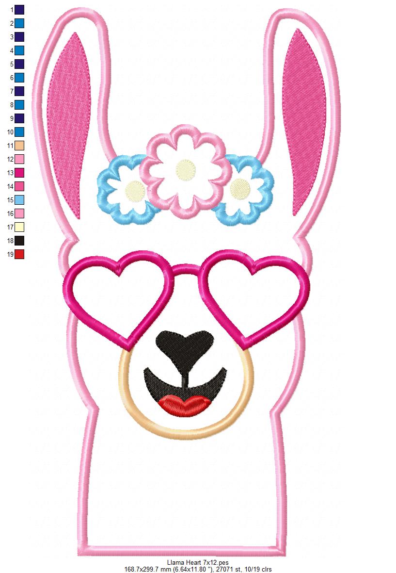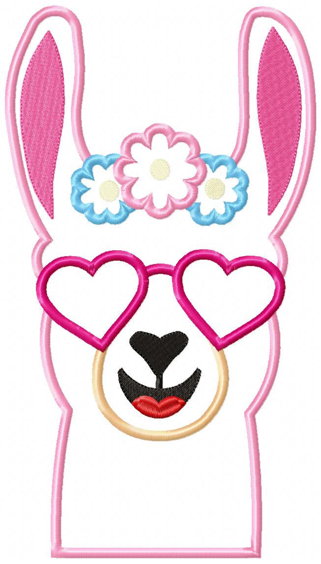 Matriz de Bordado Lhama Estilosa com Óculos Coração – Aplique