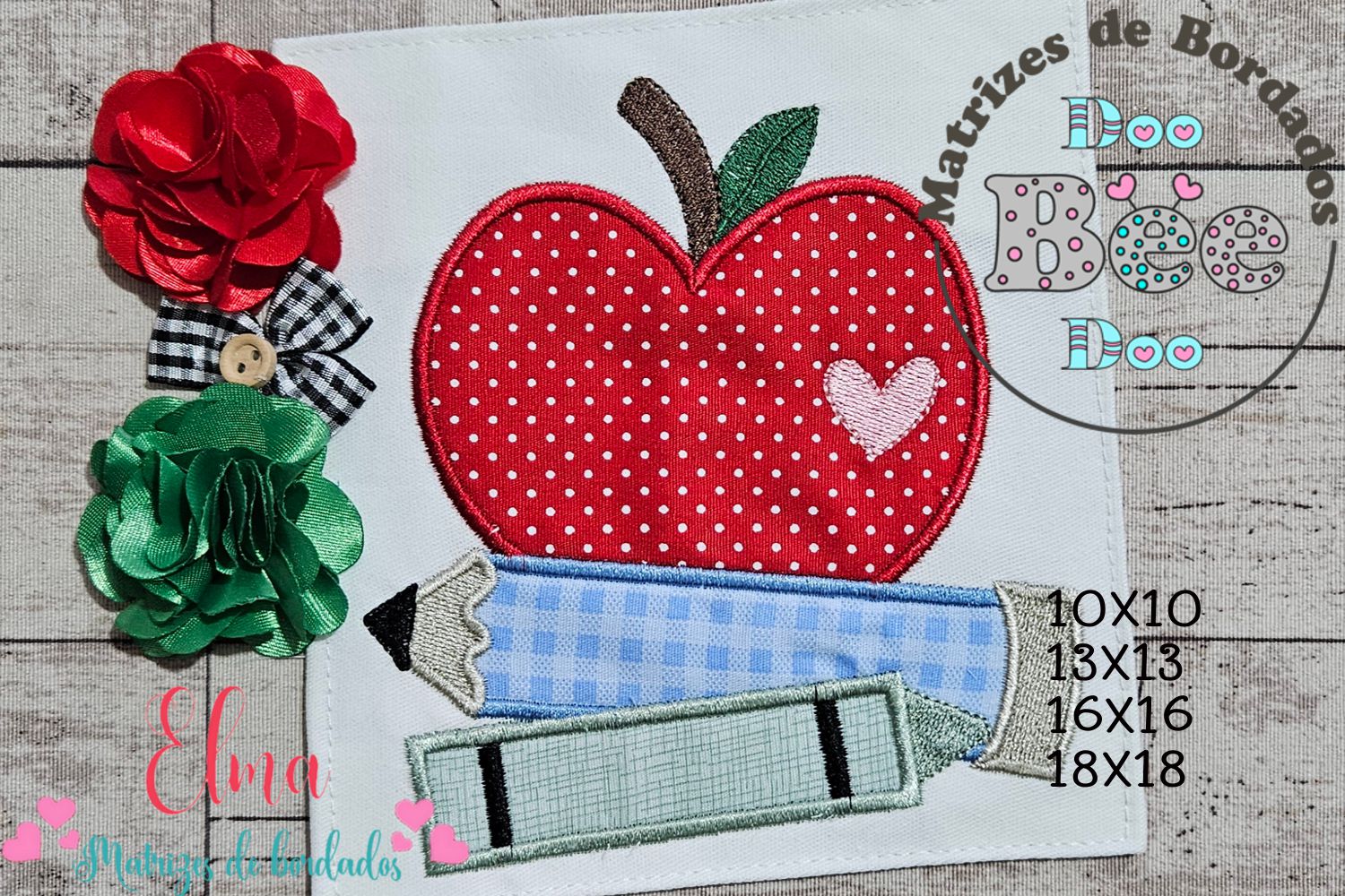 Matriz de Bordado Maçã e Lápis Fofinhos para Volta às Aulas – Aplique