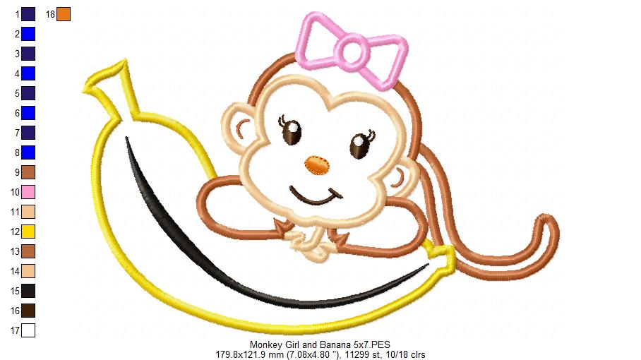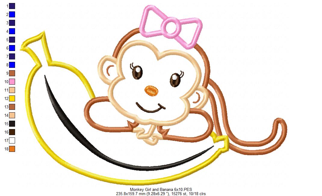 Matriz de Bordado Macaquinha Divertida com Banana – Aplique