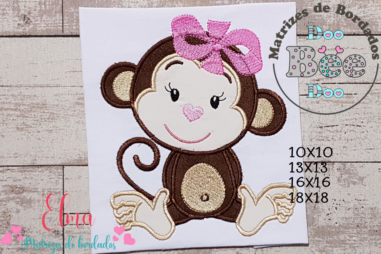 Matriz de Bordado Macaquinha Fofa com Laço – Aplique