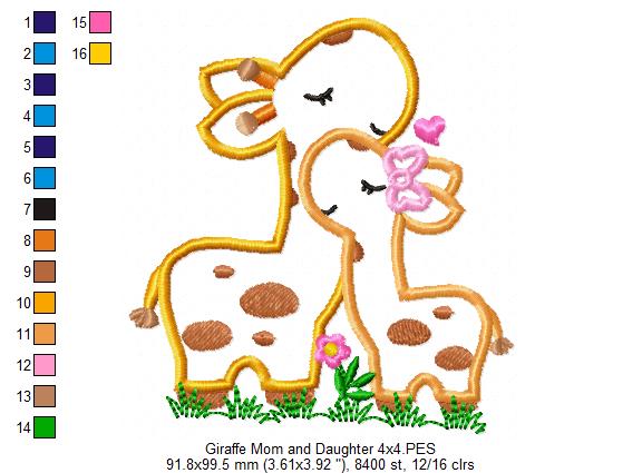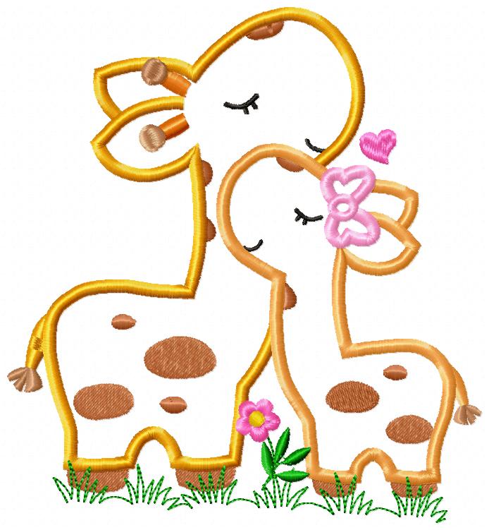 Matriz de Bordado Mamãe e Filhote de Girafa com Laço – Aplique