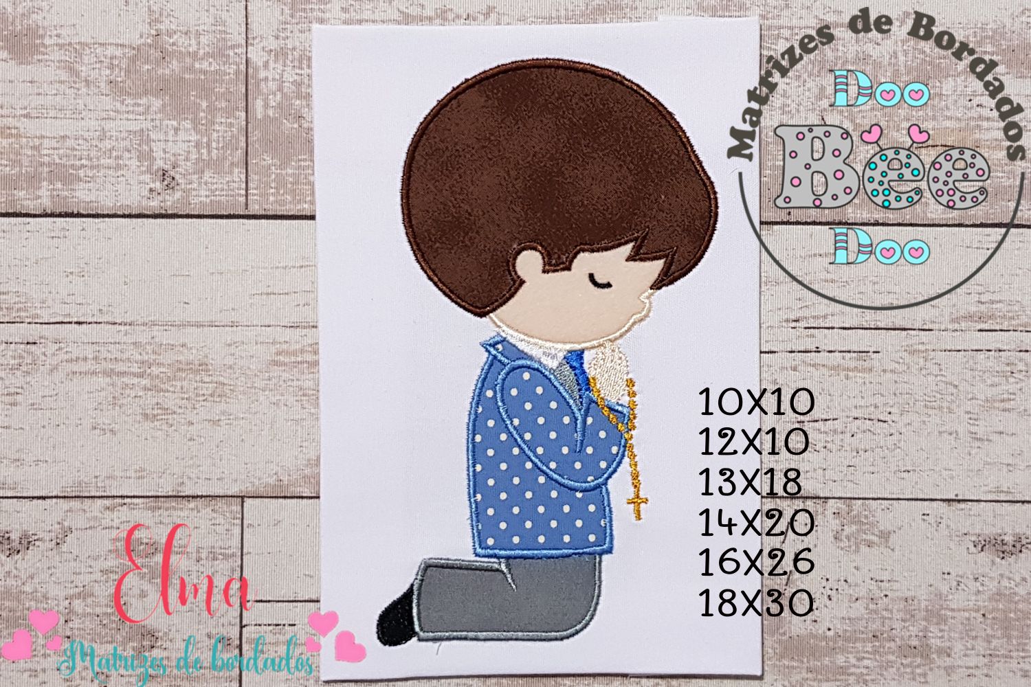 Matriz de Bordado Menino Orando com Terço – Aplique