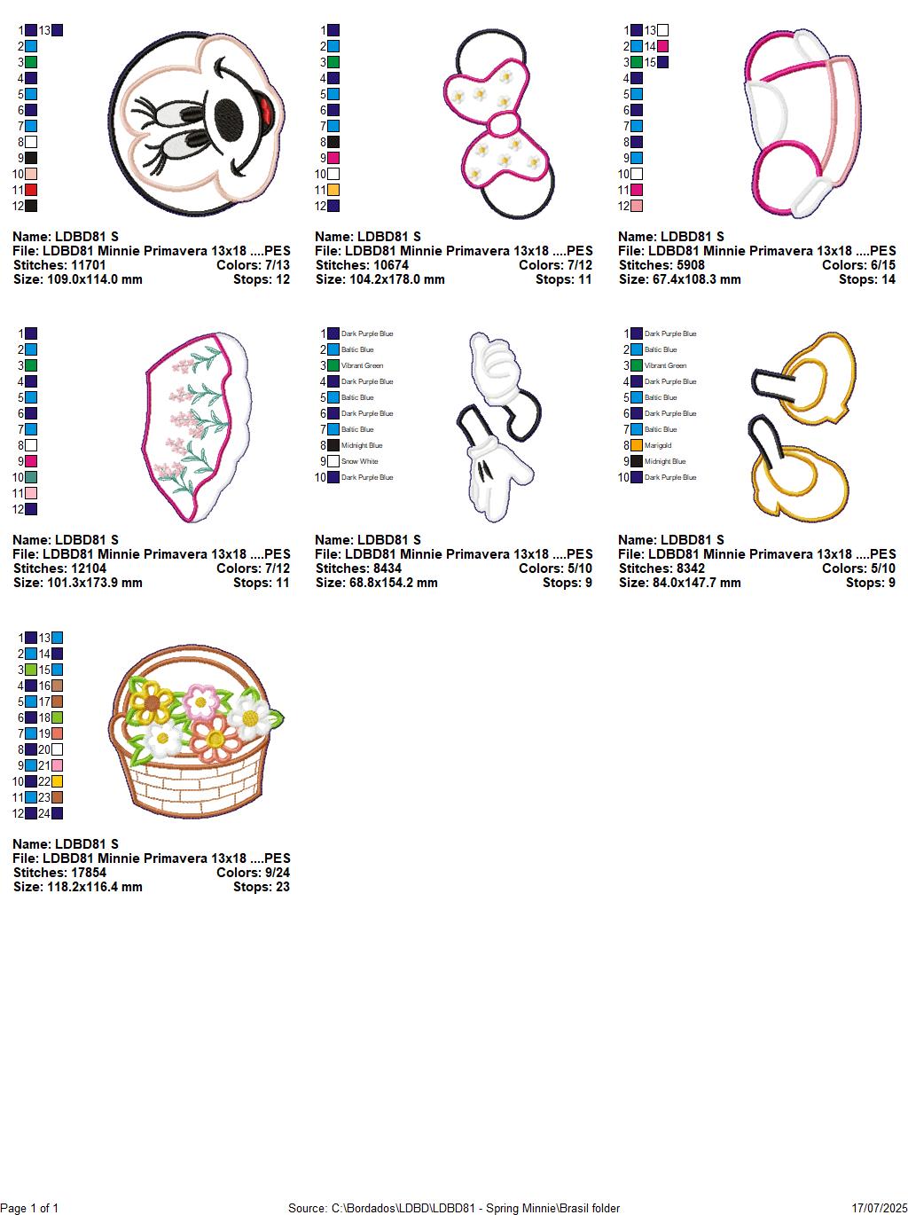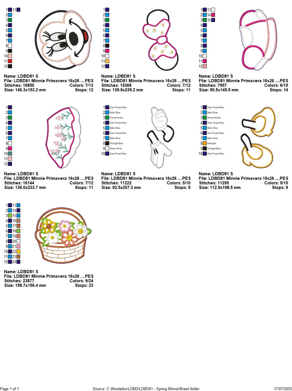 Matriz de Bordado Minnie com Cesta de Flores – Projeto ITH