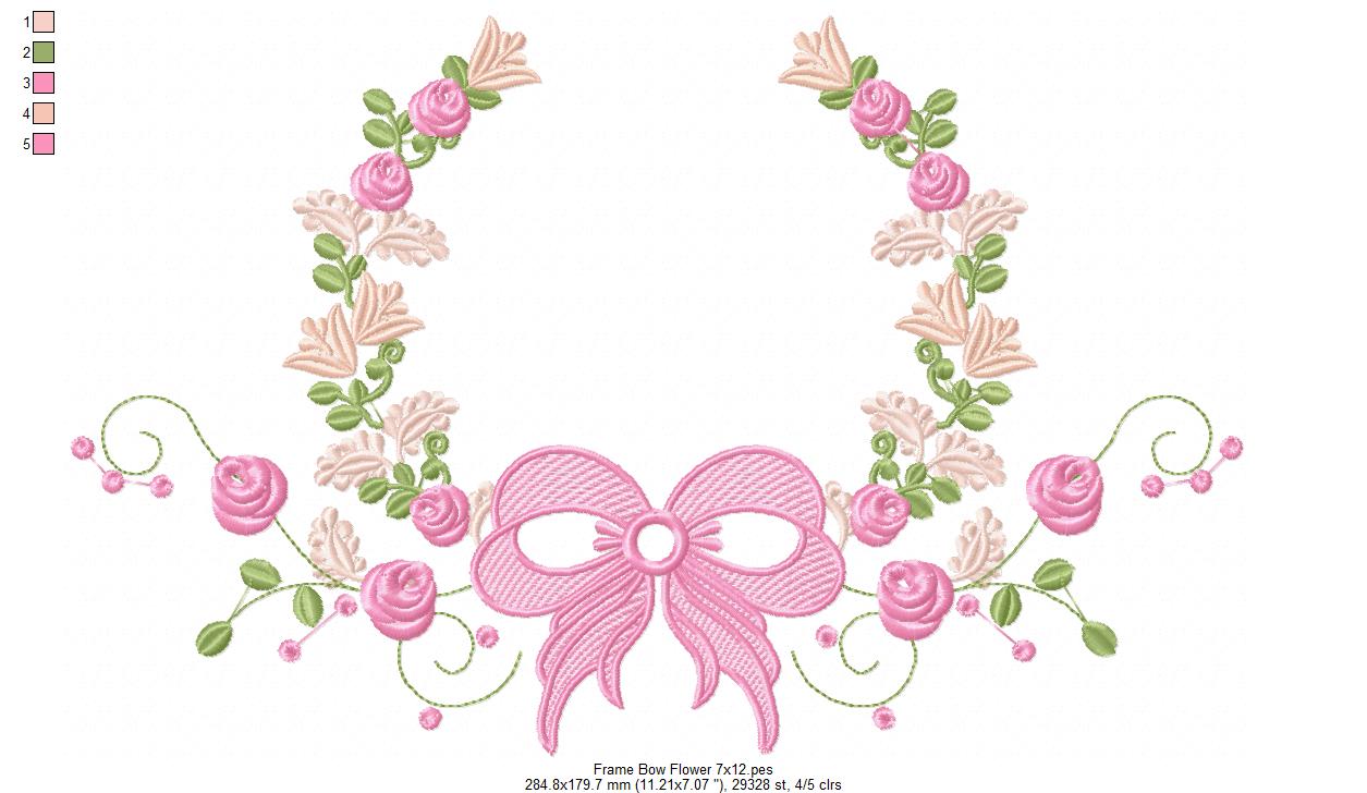 Matriz de Bordado Moldura Floral com Laço – Ponto Satim