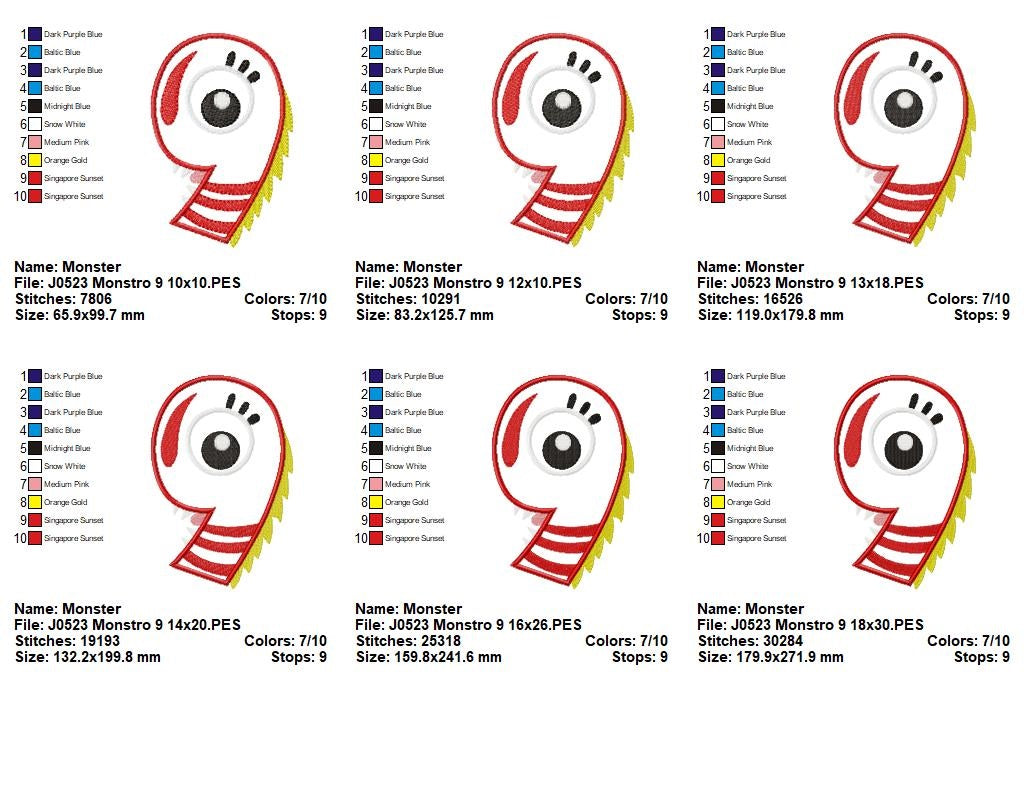 Matriz de Bordado Monstrinho Número 9 Divertido – Aplique