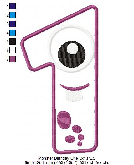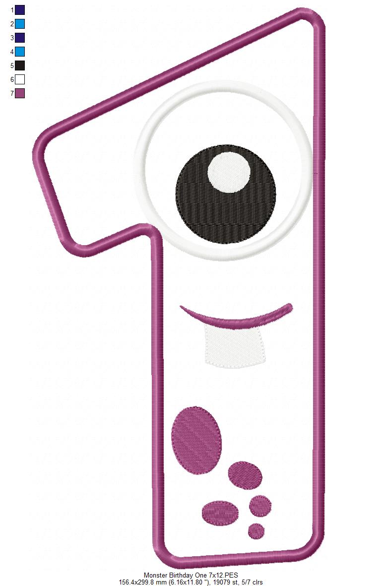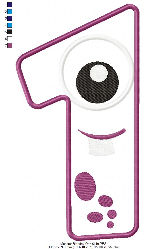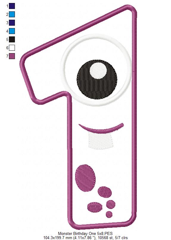 Matriz de Bordado Monstrinho Número Um Divertido – Aplique