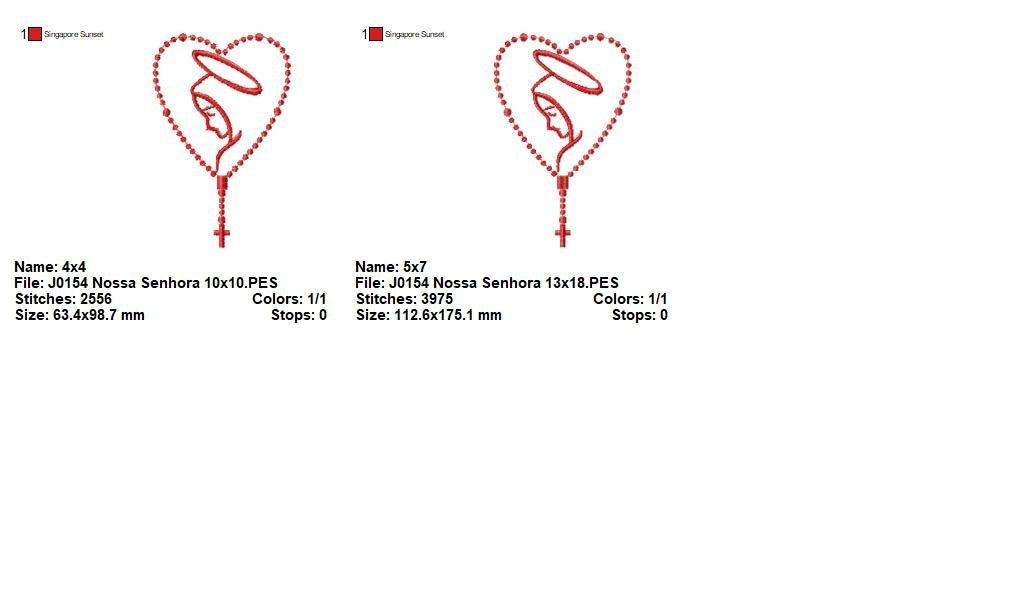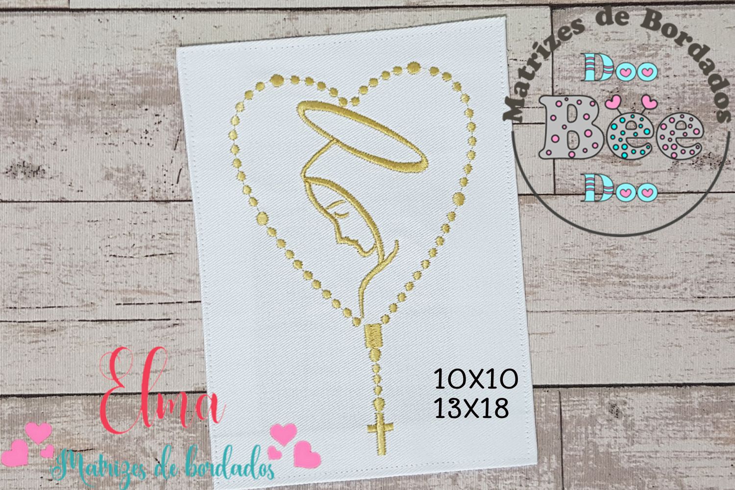 Matriz de Bordado Nossa Senhora de Fátima com Terço em Coração – Ponto Satim