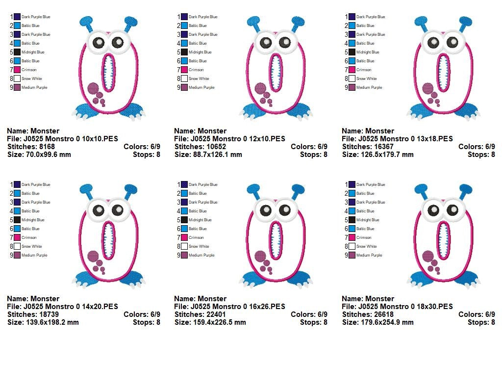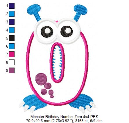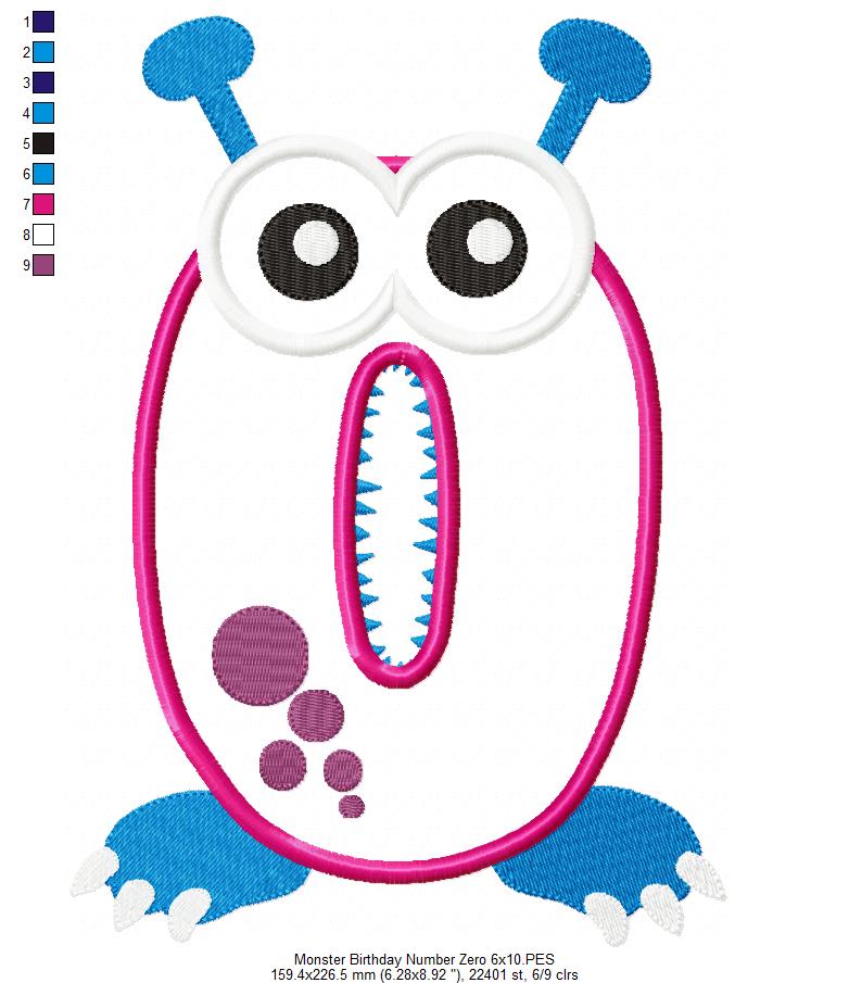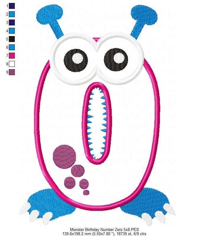 Matriz de Bordado Número 0 Monstrinho Divertido – Aplique