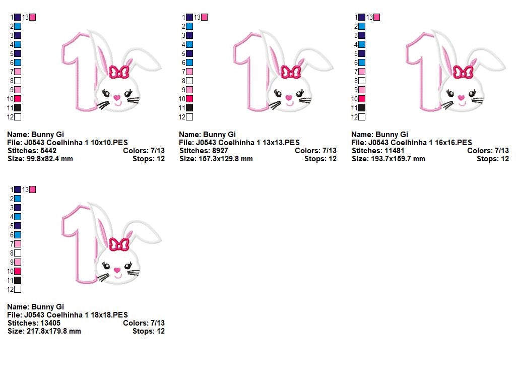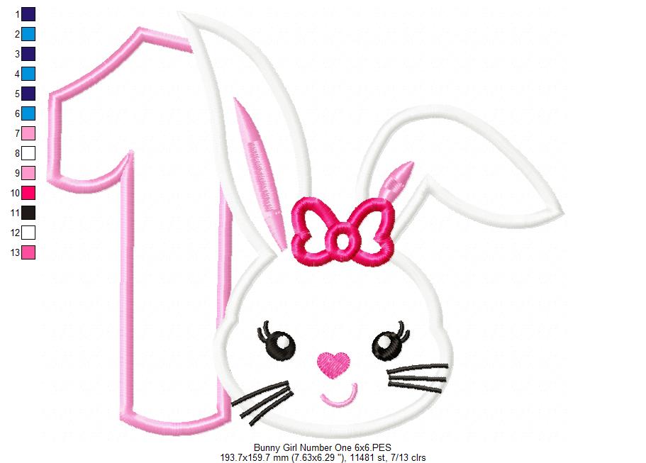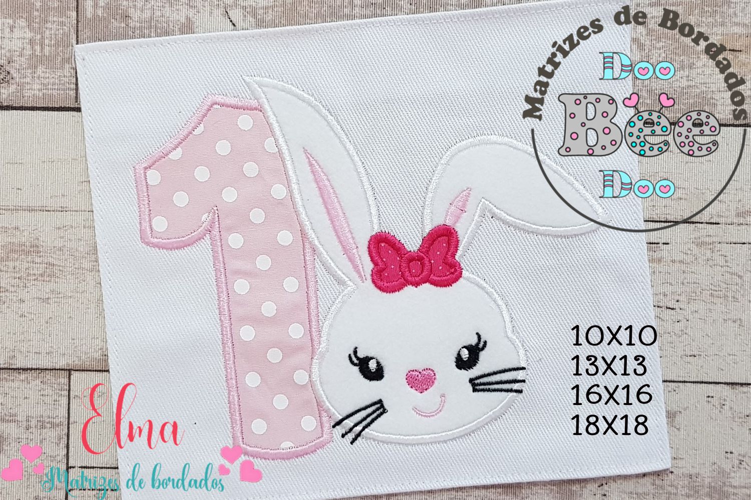 Matriz de Bordado Número 1 com Coelhinha Fofa – Aplique
