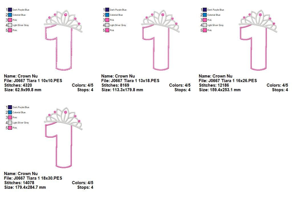 Matriz de Bordado Número 1 com Tiara de Princesa – Ponto Aplique