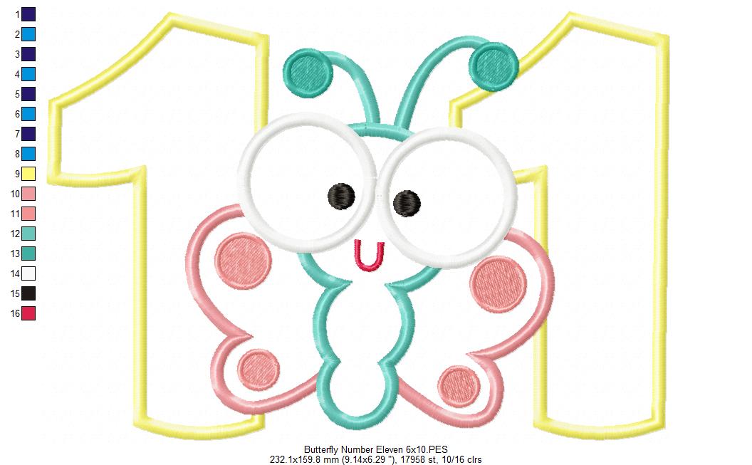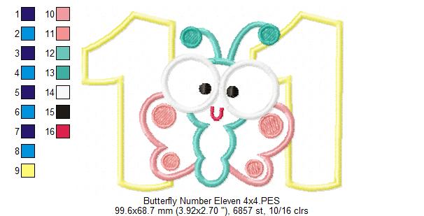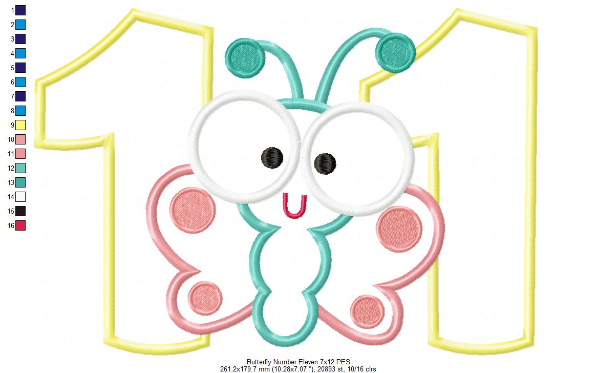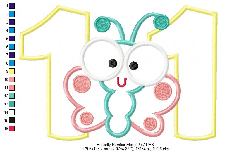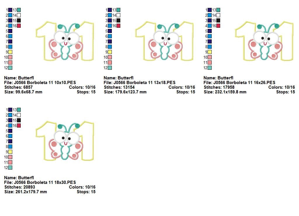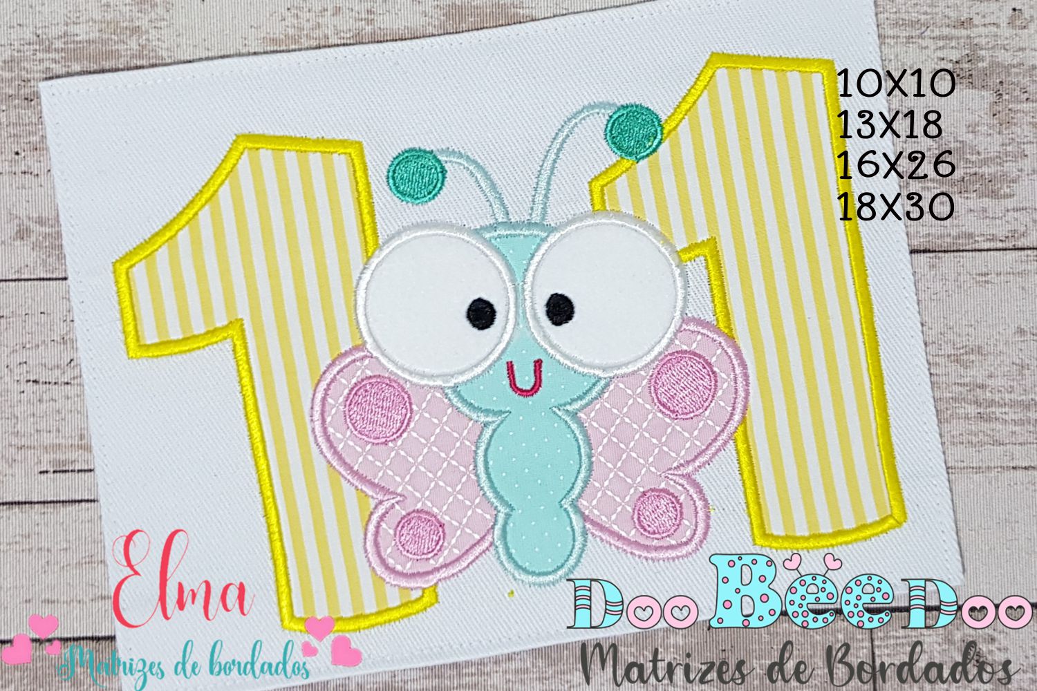 Matriz de Bordado Número 11 com Borboletinha Fofa – Aplique